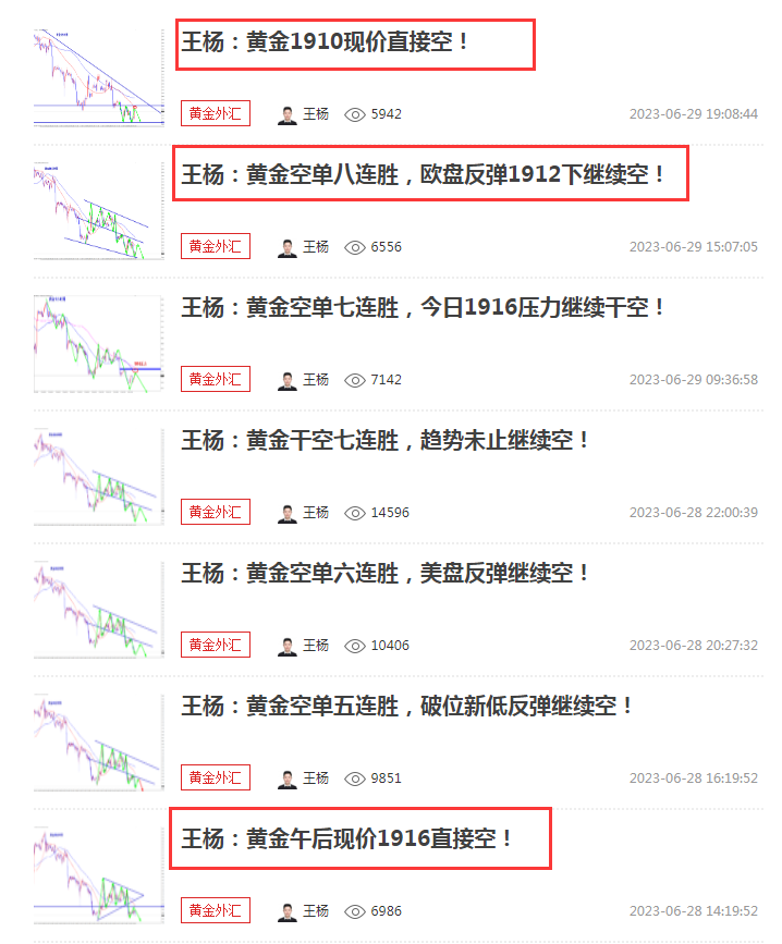 还记得上一篇文章吗?黄金反弹了,怎么办?直接告诉现价1910直接干空。线下也黄金1906干空,1902继续干空黄金大跌获利收割,黄金空单接力八连胜,直接已经斩获十连胜,趋势行情,就是这么顺畅。