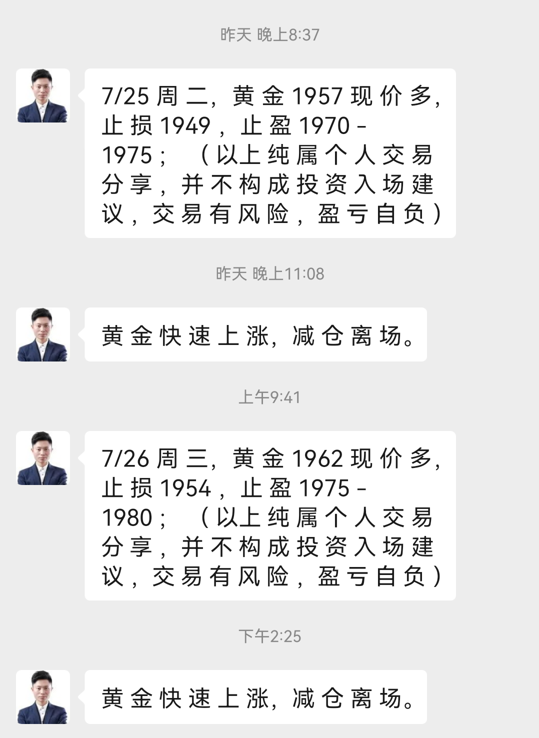 黄金昨日1957干多,今天早盘1962继续干多,文章公开提示现价1962直接干多。黄金大涨,获利收割,美联储前夕黄金多单先斩获两连胜。顺势轻飘飘,逆势乱糟糟。