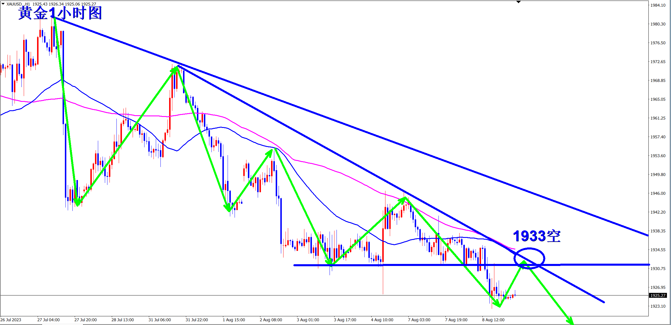 黄金当前继续延续下跌,顺势干空!早盘依托1933的压力继续干空!顺势轻飘飘,逆势乱糟糟!跟上市场的节奏,盈利就是顺理成章!