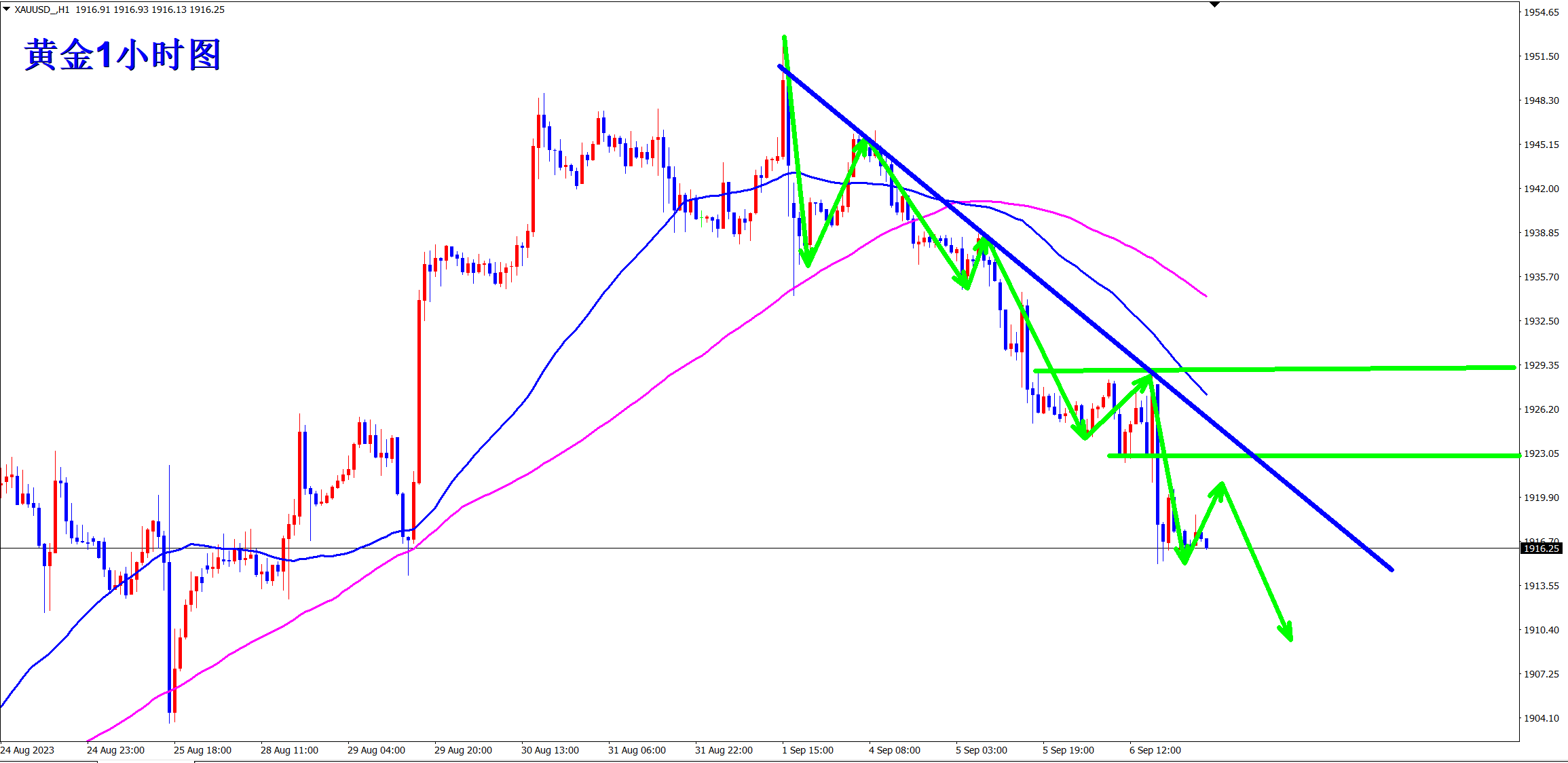 黄金1923空,止损1930,目标1910-1900;