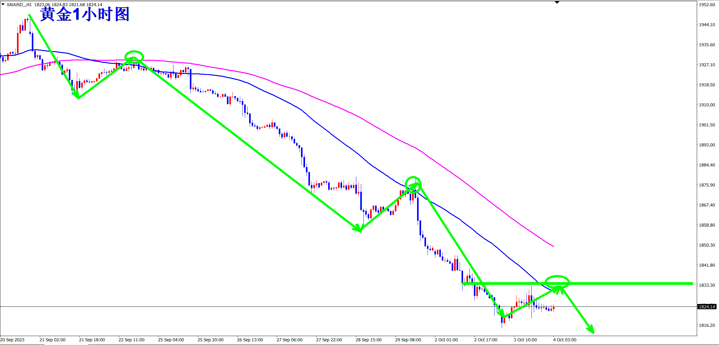 而黄金当前的压力就是均线的压制位置,昨日的反弹还是均线下方运行,今日反弹遇阻后可以继续进场干空,依托1833的压力直接空即可!调整后还将继续趋势下行!继续破位新低!