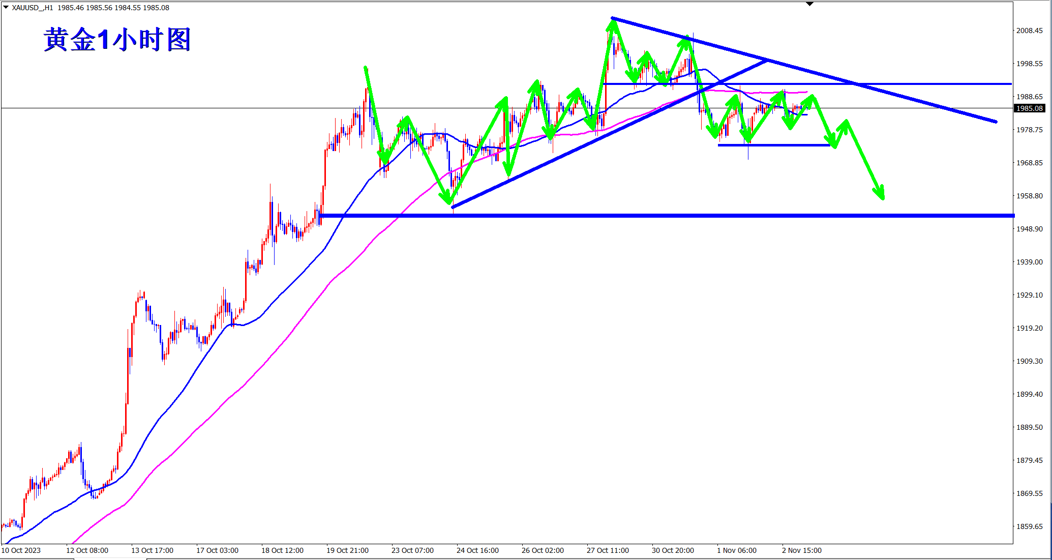当前黄金明显受到1990区域的压力压制,那早盘靠近1990附近就应该直接空,所以1986现价空,防守就是1994位置,下方一旦破位1970,必将是瀑布破位行情!而且今日大非农,暴跌开启!下方直指1950!将空头进行到底!