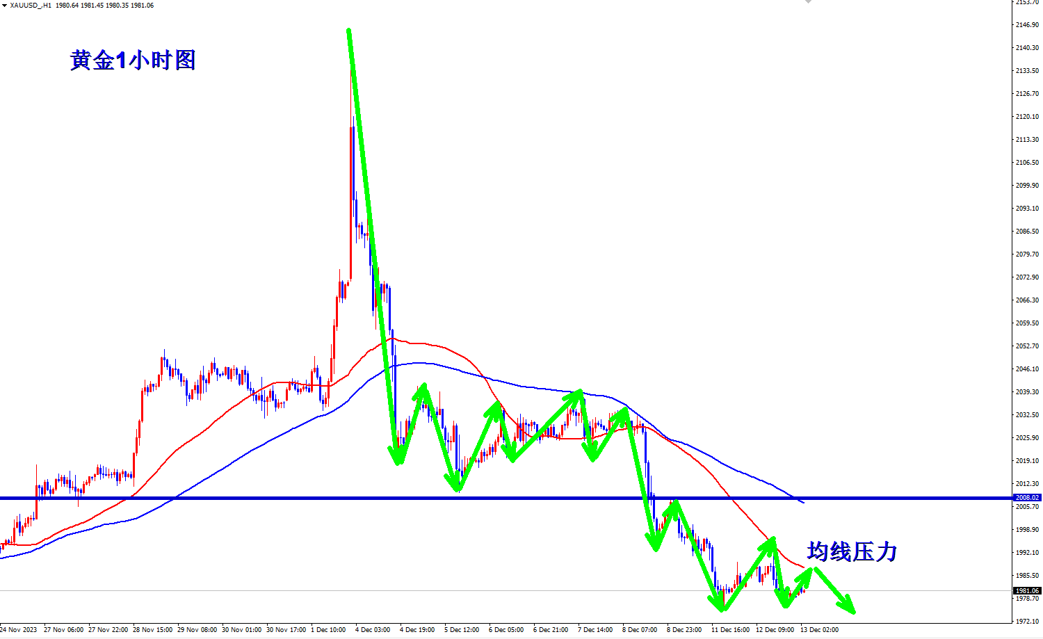 黄金小时级别上非常明显的下跌格局,而且k线一直维持在均线下方运行!十足的空头跌势!趋势为王,点位致胜!我们一直都是趋势交易的践行者,此前一路多,现在一路空!牛不牛,实力全网共同见证!
