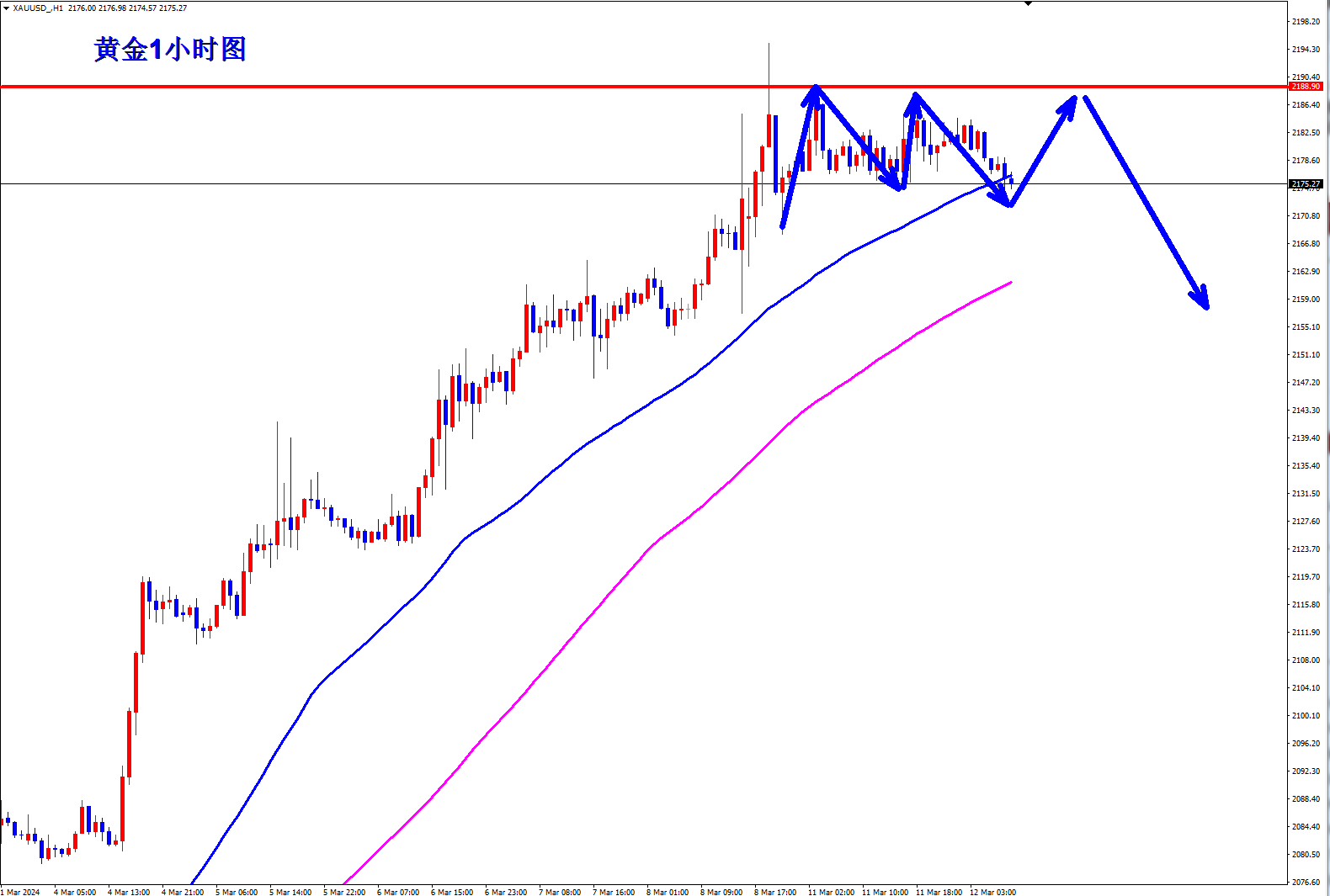 黄金1小时横盘,而且没有力度再创新高,黄金震荡之后还是下行,黄金今天再创新低,这也说明黄金开始走弱,黄金开始跌破均线支撑,空头力度开始显现,接下来可能就要轮到黄金空头表演了,黄金这两天多次反弹承压2185附近阻力,今天反弹2185下继续逢高干空,黄金欧盘反弹2182可以继续先空起来。