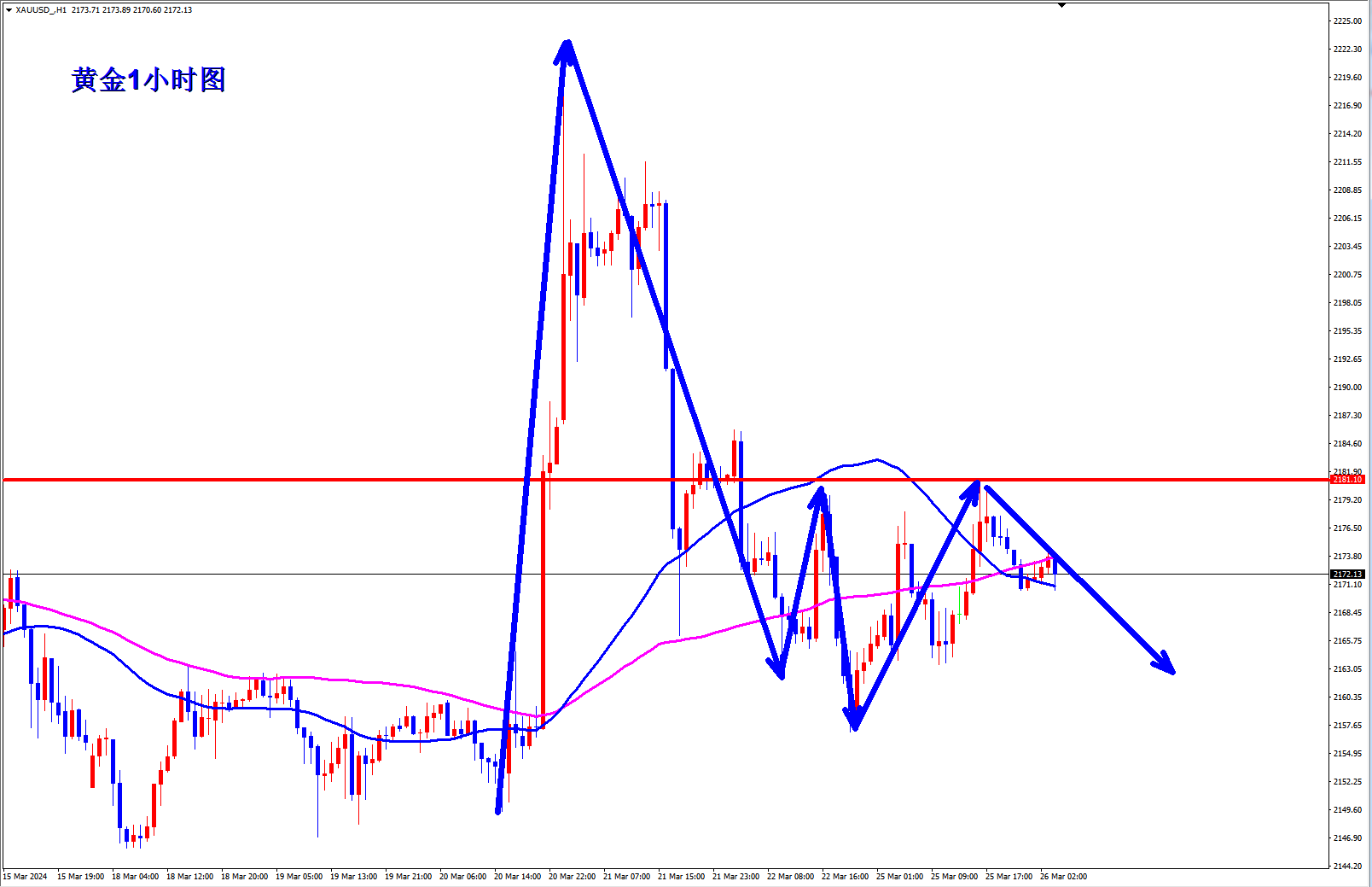 黄金1小时均线也进入死叉空头形态,而且黄金1小时倒V反转之后,黄金反弹都是十分弱势,反弹上去就下来,上方阻力重重,昨天美盘也只是反弹到2181附近,早盘反弹2181下逢高继续干空,反弹2178附近可以先空起来。高位冲高回落,黄金不直接下跌也是先震荡,暂时很难直接大涨上去。