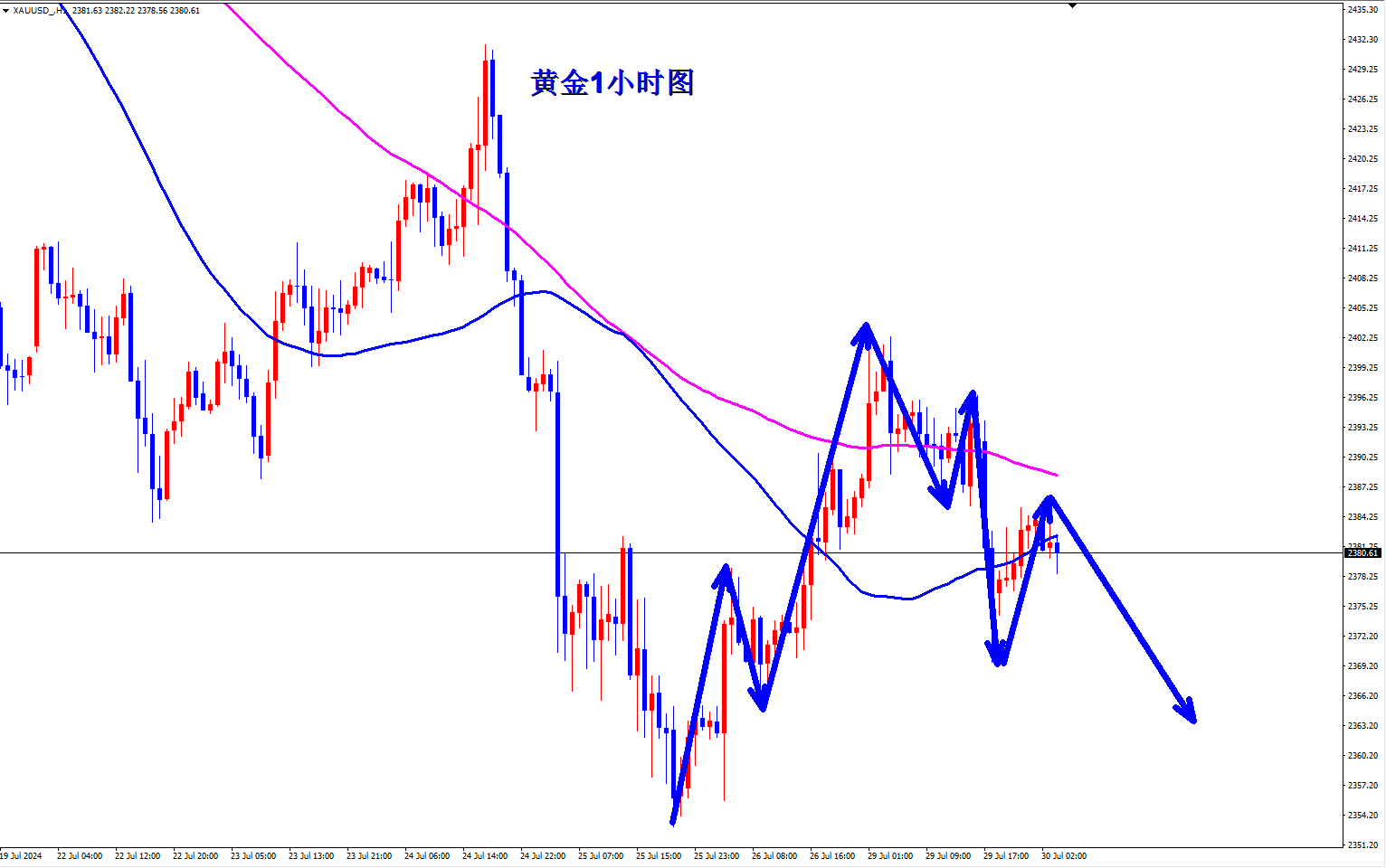 黄金2386空,止损2395,目标2370-2365;