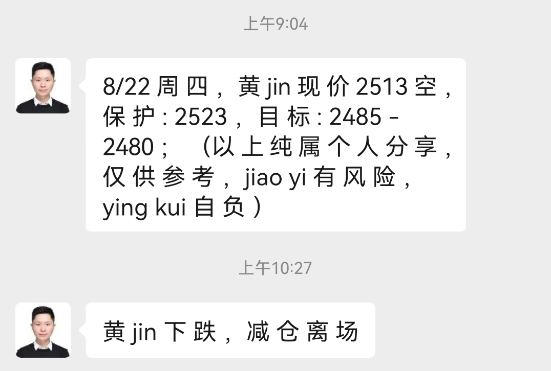 黄金早盘2513直接空,文章也直接公开提示空,黄金如期下跌,先收割一波,黄金高位迟迟不上攻,一旦上方多头量能得到释放,那么黄金空头就将发力。黄金反弹还是继续空。
