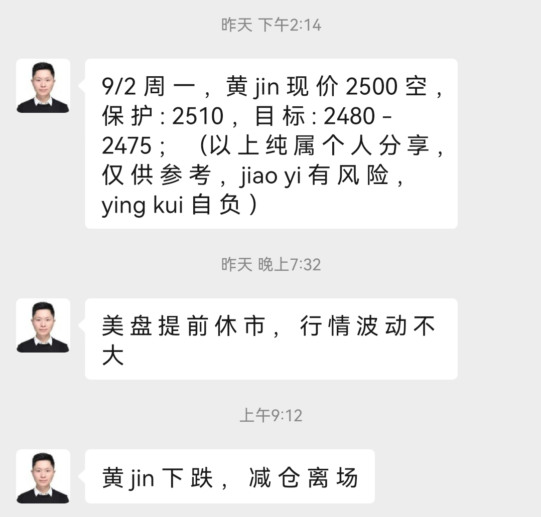 昨天由于美盘提前休市,黄金波动不大,黄金2500反复提示空,文章也公开提示空,方向对了不怕路远,黄金最终还是如期下跌收割,黄金接力上周五做空三连胜,黄金做空斩获四连胜。