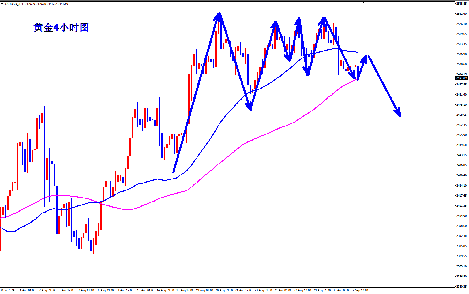 我们这两天一直强调黄金4小时开始拐头,黄金空头开始慢慢发力,黄金现在4小时高位构筑顶部结构,黄金反弹就是给空的机会,早盘反弹继续空,黄金4小时均线阻力下移到2507一线,早盘反弹2507下继续逢高空,反弹2500附近可以继续先空起来。