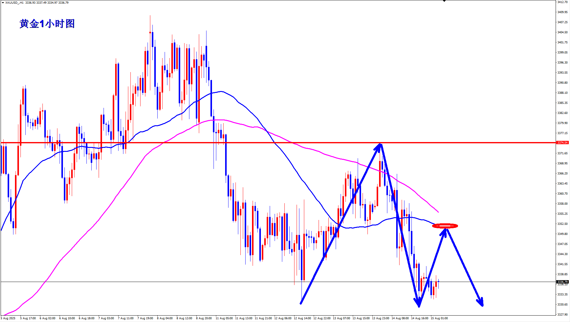 黄金1小时均线继续向下发散,黄金空头动能十足,黄金1小时也不断刷新近日低点,黄金短线还是明显的空头趋势,黄金短期均线阻力已经下移到3352附近,黄金早盘反弹承压3352下还是继续逢高空。