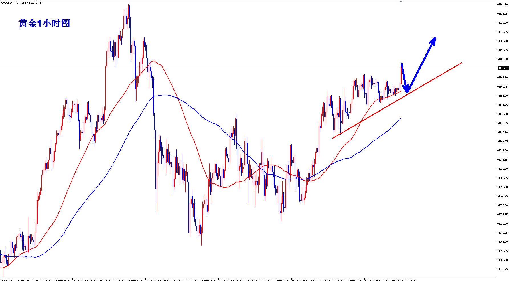 黄金1小时开始震荡上行的走势,黄金昨天4140区域也形成了有效的支撑,黄金今天回落还是继续顺势多,黄金短期回4150附近可以继续顺势多,黄金整体还是震荡向上的走势,而且早盘再次急速拉升,说明黄金多头已经跃跃欲试。