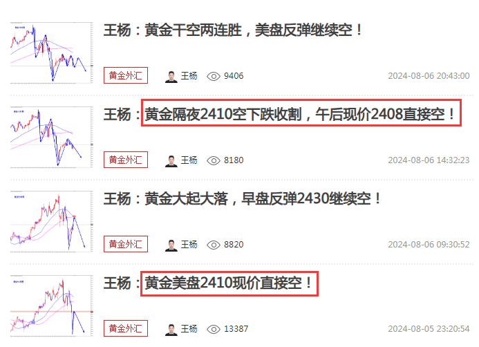 黄金昨天其实我们一直强调,黄金做多并不是因为黄金行情反转了,而是反弹的空间加大了而已,黄金2411反手干多之后,黄金如期上涨,黄金美盘冲高回落短线承压,黄金2428直接再次反手干空,黄金美盘大跌,黄金昨日多空双杀,文章也直接公开提示2411反手干多,2428反手干空,黄金现在冲高回落,还是回归到空头趋势,早盘反