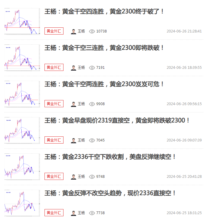 王杨:资深黄金分析师,多年黄金分析及实盘操作经验,曾独掌千万,纵横于市场;对国际基本面、技术盘面解读有独特的思维理念和操作模式,曾对市场巨鳄的思路做过深度的研究;金融市场瞬息万变、灵活变动、运筹帷幄、防微杜渐、如履薄冰以一颗谦卑的心去纵横市场方可百战不殆。