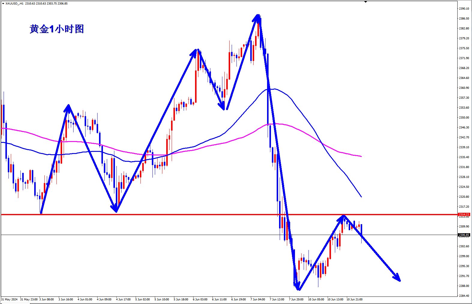 黄金继续空头趋势,黄金昨日美盘干空两连胜,路演也还是公开提示继续干空,黄金仅仅是反弹,不要错把反弹当反转。黄金早盘现价2313直接空! 黄金1小时反弹高点依次降低,黄金昨天反弹那么强也仅仅只是反弹到了2320附近,黄金就只是反弹而已,行情没有反转,黄金2320下继续逢高干空,早盘现价2313可以空起来。