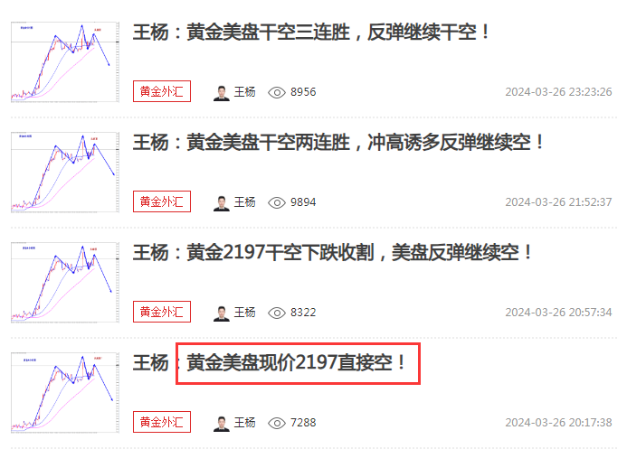 黄金昨天避险上涨,黄金冲高2200之后回落滞涨,黄金2197开始干空,而且文章也公开提示干空,路演也直接公开提示干空,还说了黄金会怎么涨上去就怎么跌下来,拭目以待,黄金如期冲高回落,昨日美盘219721932185分别干空,黄金大跌全部收割,黄金斩获三连胜,今天黄金反弹继续干空。 黄金4小时均线开始走平,如果