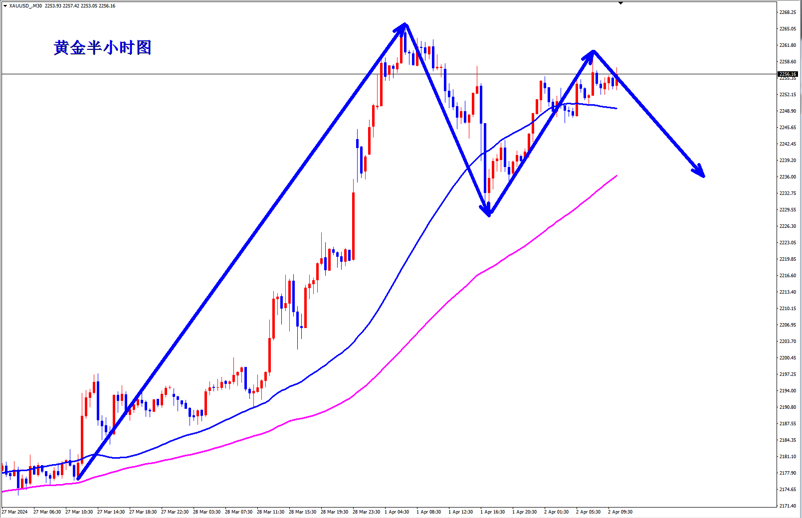 黄金现在波动加大,又再次上涨上来,黄金现在做多就是要看突破新高,而且还不能回调,这个暂时来说可能还是有难度,黄金如果上不去,那么黄金就是双顶结构,而且昨天一个回调就37美金左右,现在很明显还是不适合做多,短线可以继续空博弈黄金的双顶结构。 黄金30分钟均线已经开始逐渐拐头,黄金如果不能突破站