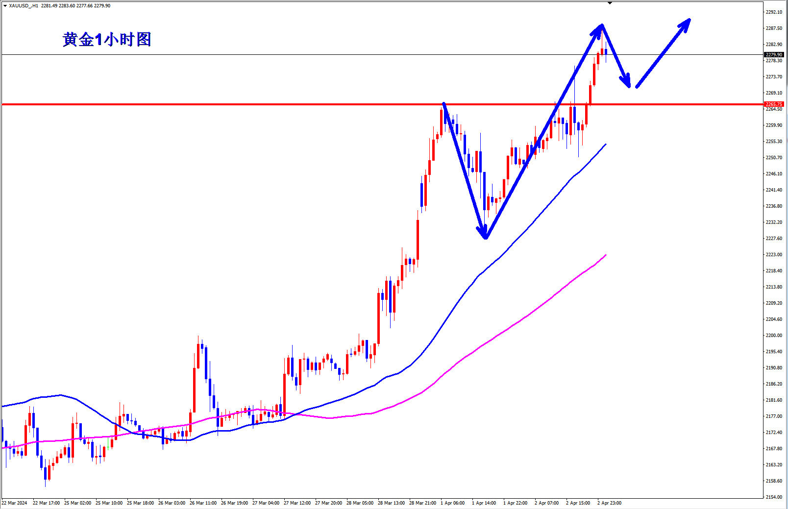 黄金再次上涨创历史新高,黄金多头太强势了,黄金多头还有力度,已经势不可挡,黄金早盘现价2278直接多。 黄金1小时再次强势深V,直接再创新高,说明多头力度十分强劲,还有上涨动能,黄金回升直接创历史新高,黄金日线继续收大阳线,没有快速冲高回落的迹象,说明黄金多头还是有上涨势能的,黄金早盘现价2278