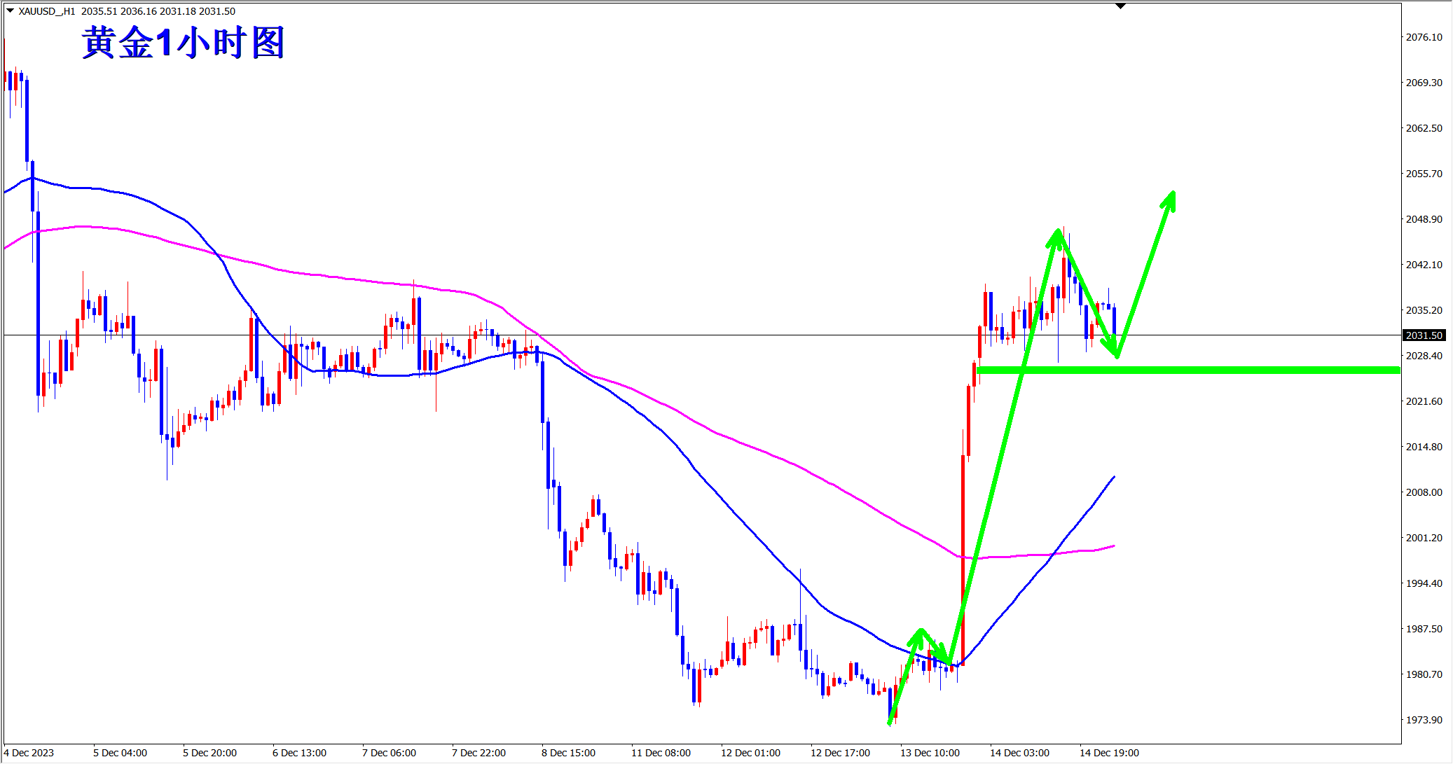 黄金昨日美联储利率决议之后直接大涨,今天我们就开始转多,而且文章也公开提示2031直接干多,黄金大涨,反手干多又是收割。这就是我们的风格,从来不做死多头也不做死空头,趋势一变就是反手,反手就是收割。 黄金1小时均线开始拐头,而且大有可能进入金叉向上发散的可能性很大,黄金大阳反转之后,量能充足,
