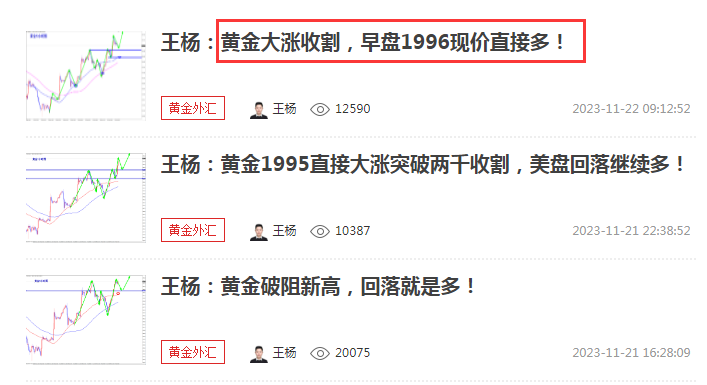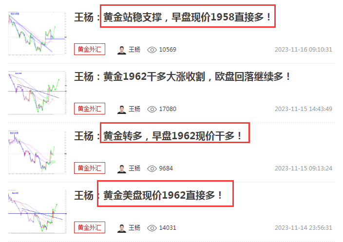 王杨:资深黄金分析师,多年黄金分析及实盘操作经验,曾独掌千万,纵横于市场;对国际基本面、技术盘面解读有独特的思维理念和操作模式,曾对市场巨鳄的思路做过深度的研究;金融市场瞬息万变、灵活变动、运筹帷幄、防微杜渐、如履薄冰以一颗谦卑的心去纵横市场方可百战不殆。