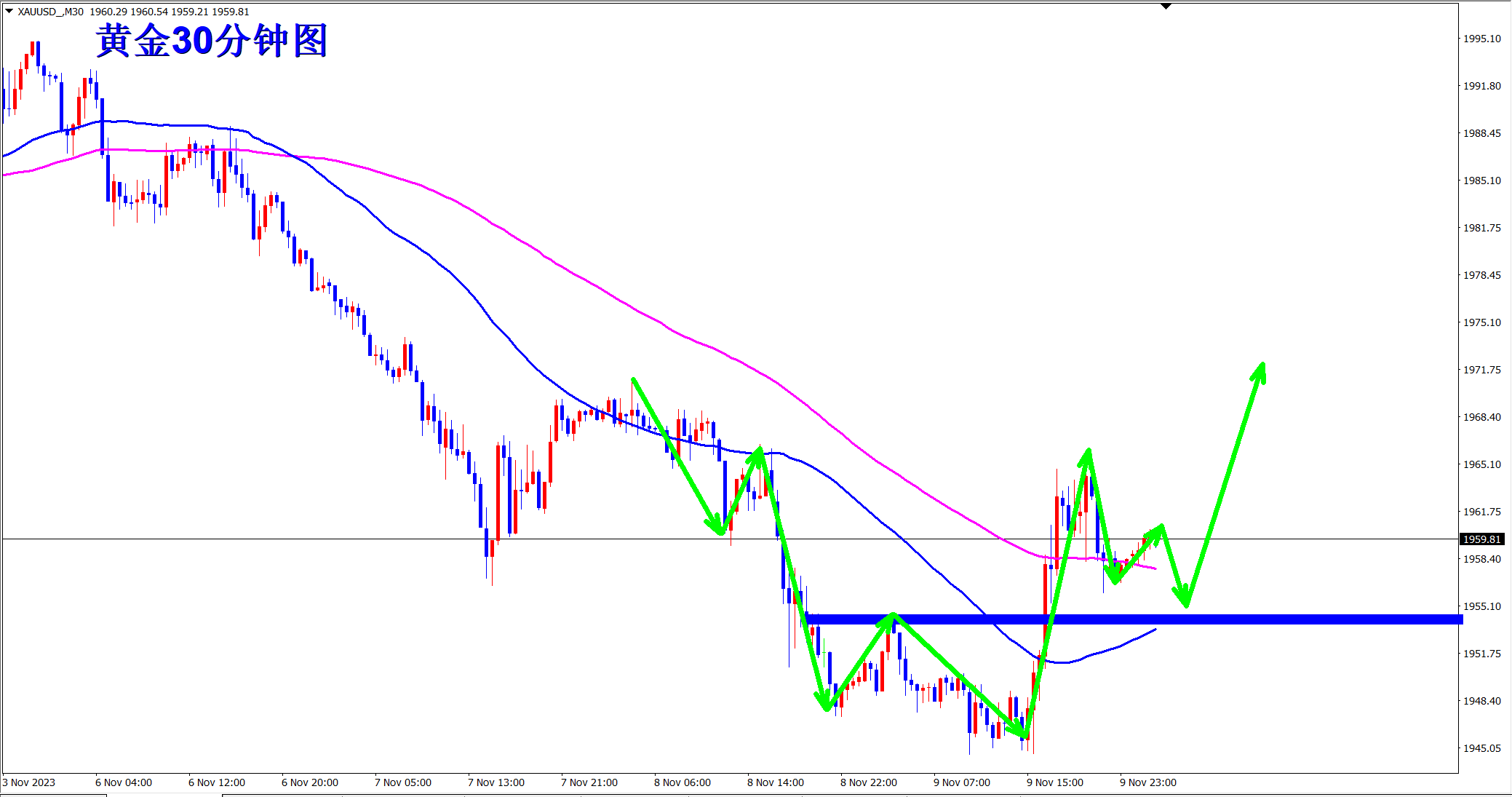黄金昨日强势拉升,突破关键压力,行情转多!王杨也在第一时间提示!当前行情反弹开启,早盘依托1953的支撑做多看涨! 势不变则守,势变则随!趋势没有改变前,王杨一路做空跟随,现在行情已经发生改变,我们也要第一时间提示,并且改变操作思路!这就是趋势交易的原则,也是王杨一直以来的交易法则!