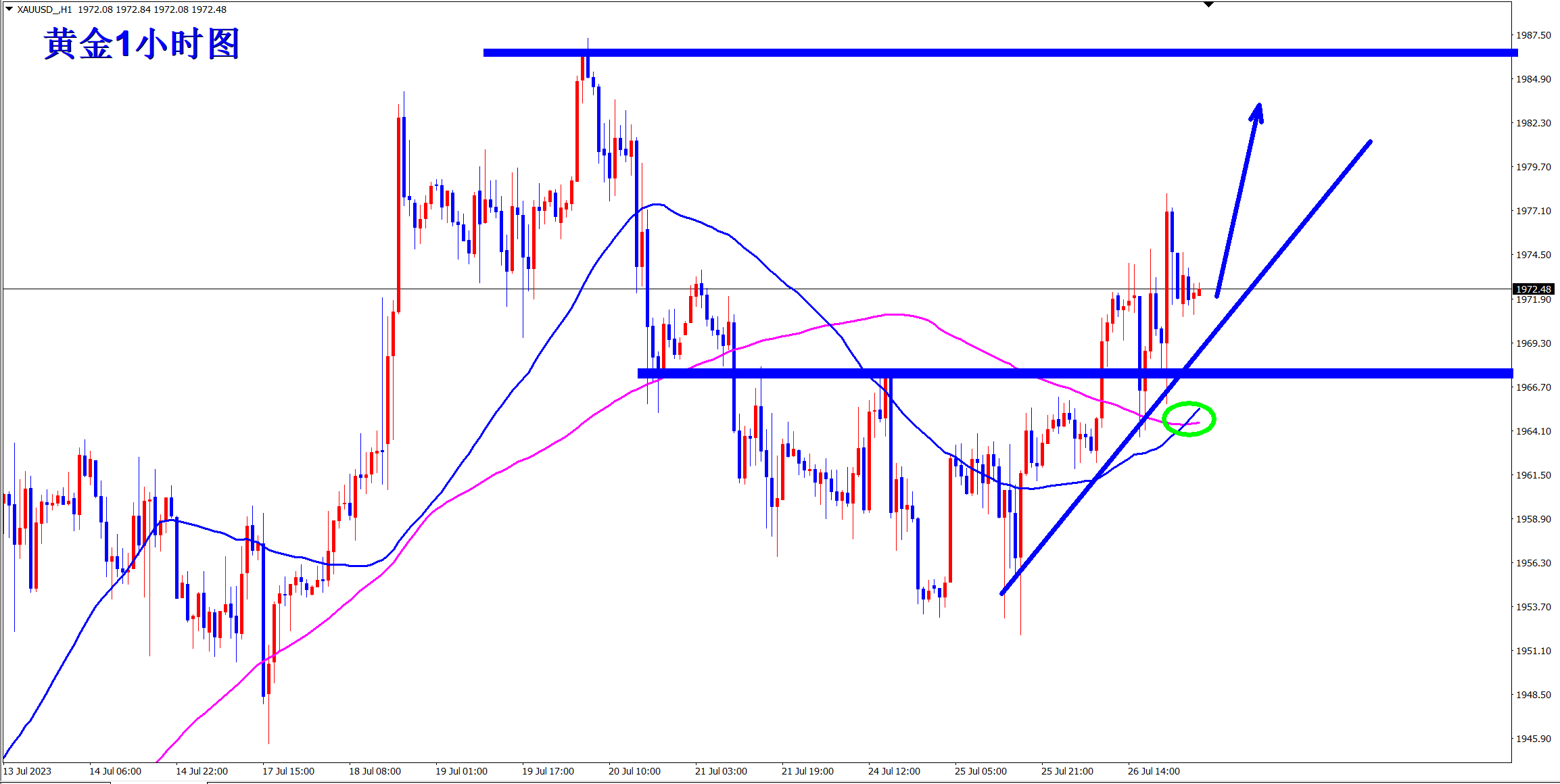 黄金昨日1957干多,今天早盘1962继续干多,文章公开提示现价1962直接干多。黄金大涨,获利收割,美联储前夕黄金多单先斩获两连胜。顺势轻飘飘,逆势乱糟糟。 这两天其实坚持看多,也曾被质疑被嘲笑,不过我心依旧,并不是因为执着,而是看图说话,市场从来不会因为某个人的意志为转移,而是有自己身的节奏。