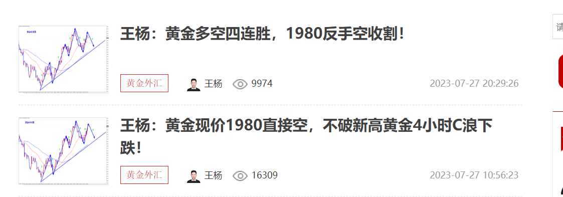 王杨:资深黄金分析师,多年黄金分析及实盘操作经验,曾独掌千万,纵横于市场;对国际基本面、技术盘面解读有独特的思维理念和操作模式,曾对市场巨鳄的思路做过深度的研究;金融市场瞬息万变、灵活变动、运筹帷幄、防微杜渐、如履薄冰以一颗谦卑的心去纵横市场方可百战不殆。