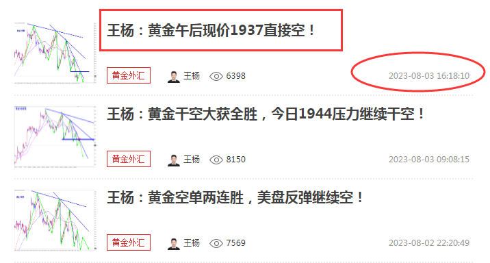 今日美盘大非农数据公布,预计又是一场腥风血雨!当前的黄金还是空头跌势,操作上继续顺势空为主,早盘依托1944的压力继续干空! 趋势下跌行情,顺势而为!昨日行情虽然小震荡,但王杨分别在靠近1937一线做空,依旧拿下利润!当前行情的调整已经接近尾声,酝酿下一波暴跌行情!今日操作反弹1940附近即可再次干