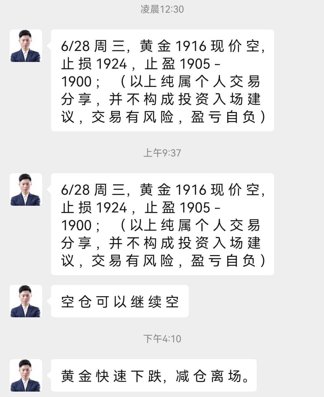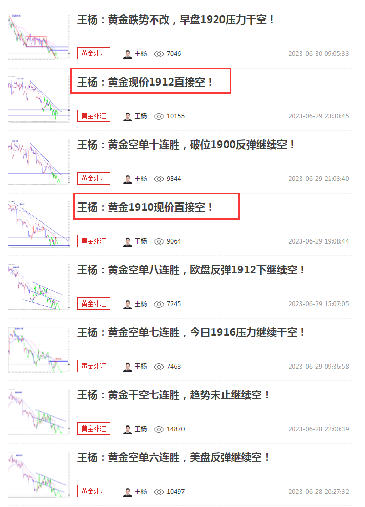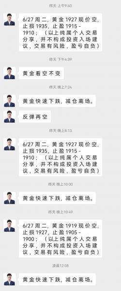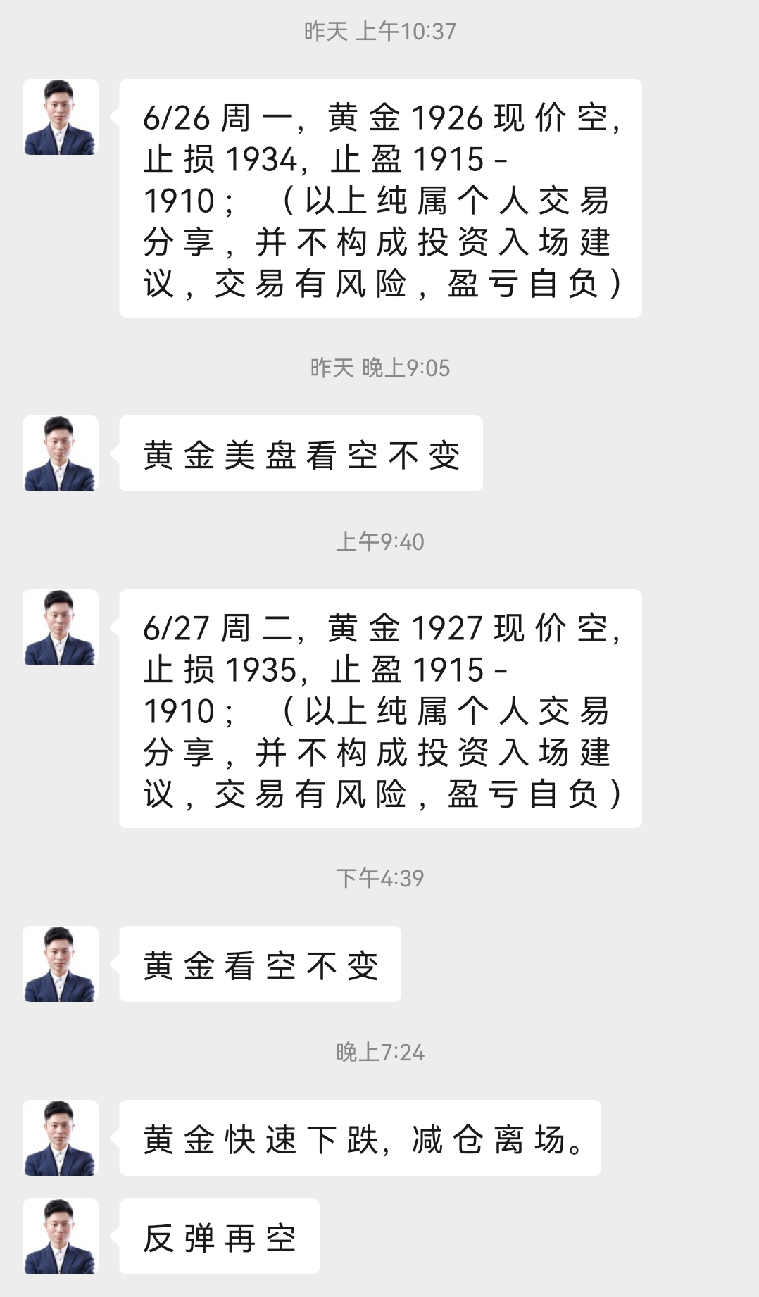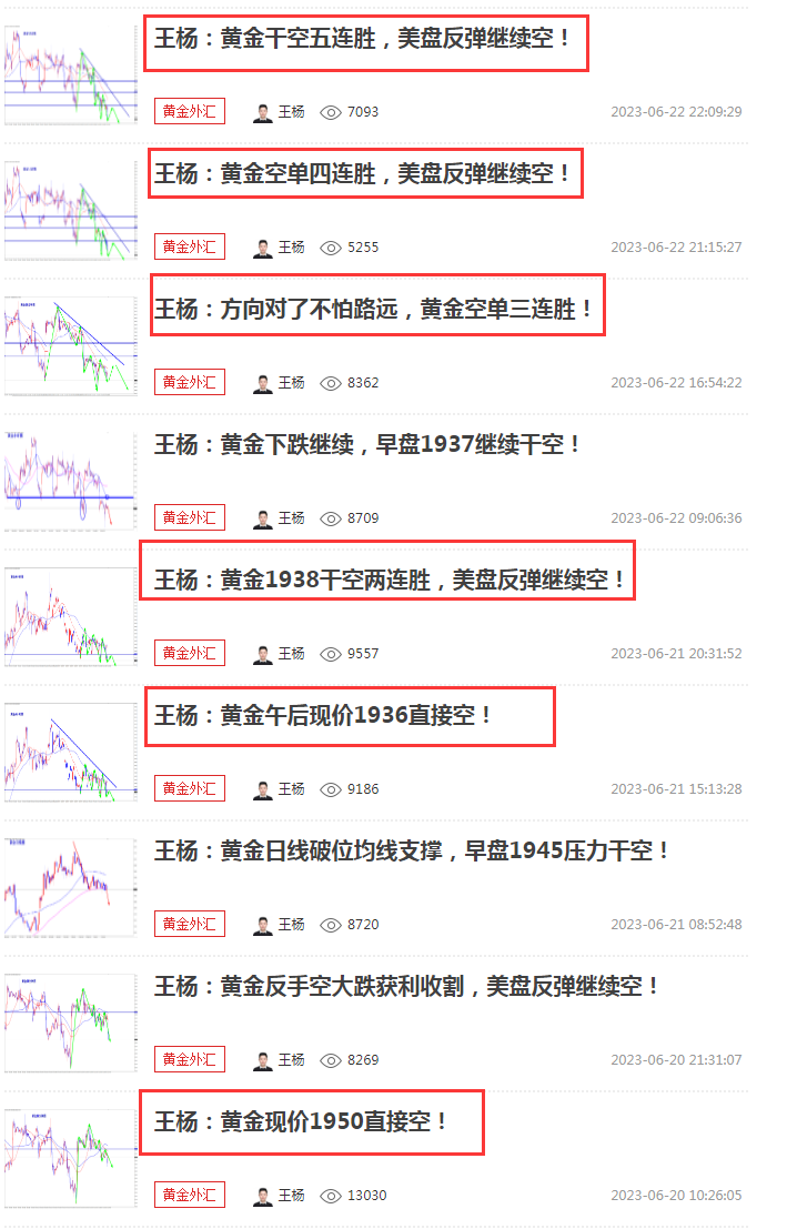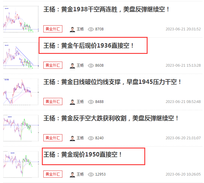 黄金昨日美盘王杨直接公开现价1933提示做空看跌,点位精准,时机到位,如期下跌获利!现在跌势不变,反弹都是做空机会!今日早盘1930压力继续干空! 黄金跌势依旧,反弹并不是反转,王杨已经提示了N多遍!从高位2070开始一路提示干空看跌,昨日美盘更是1933现价提示直接干空!事实胜于雄辩,每一波趋势王杨都紧