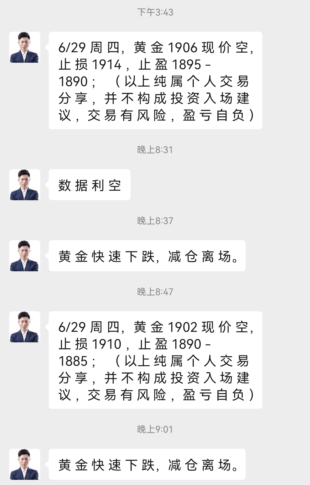 还记得上一篇文章吗?黄金反弹了,怎么办?直接告诉现价1910直接干空。线下也黄金1906干空,1902继续干空黄金大跌获利收割,黄金空单接力八连胜,直接已经斩获十连胜,趋势行情,就是这么顺畅。 现在黄金跌破1900了,又该咋办,抄底?抄底不是我的风格,那就将趋势干到底,反弹继续干空,黄金跌破1900,继续创