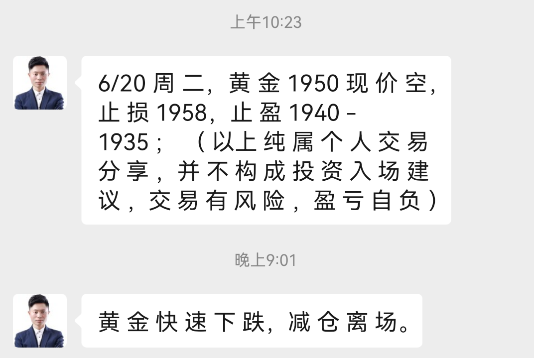 黄金昨日震荡后直接暴跌,王杨一直坚守空头,1960果断干空,如期暴跌收割!当前下跌格局不变,反弹仍是干空机会,早盘1957压力干空! 黄金当前明显的偏空行情,虽然处于区间内震荡,但是4小时级别上看,多次反弹都受到长期均线的压制,没有突破前,就是空头跌势!操作上继续高空! 当前的关键压力位置是1957位