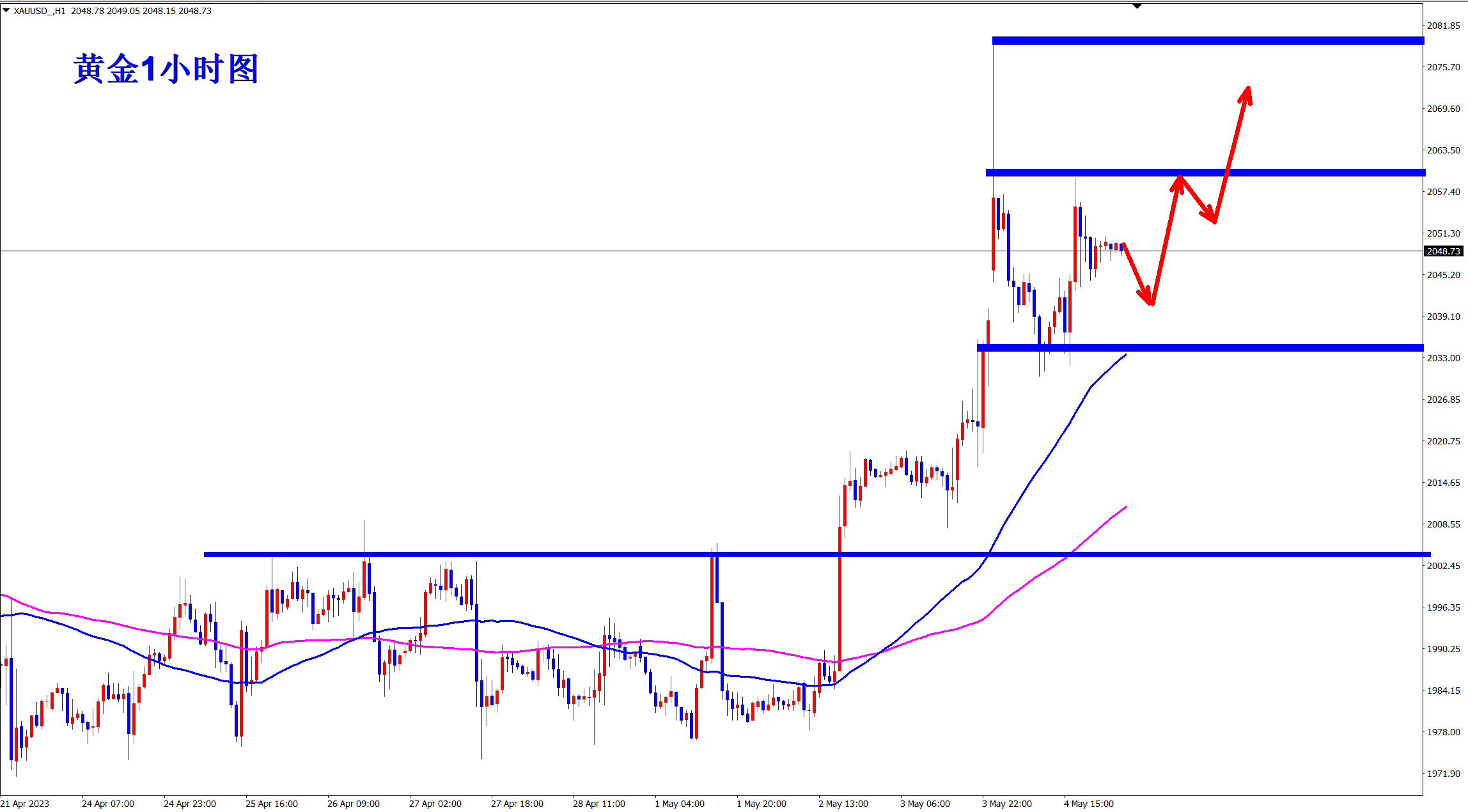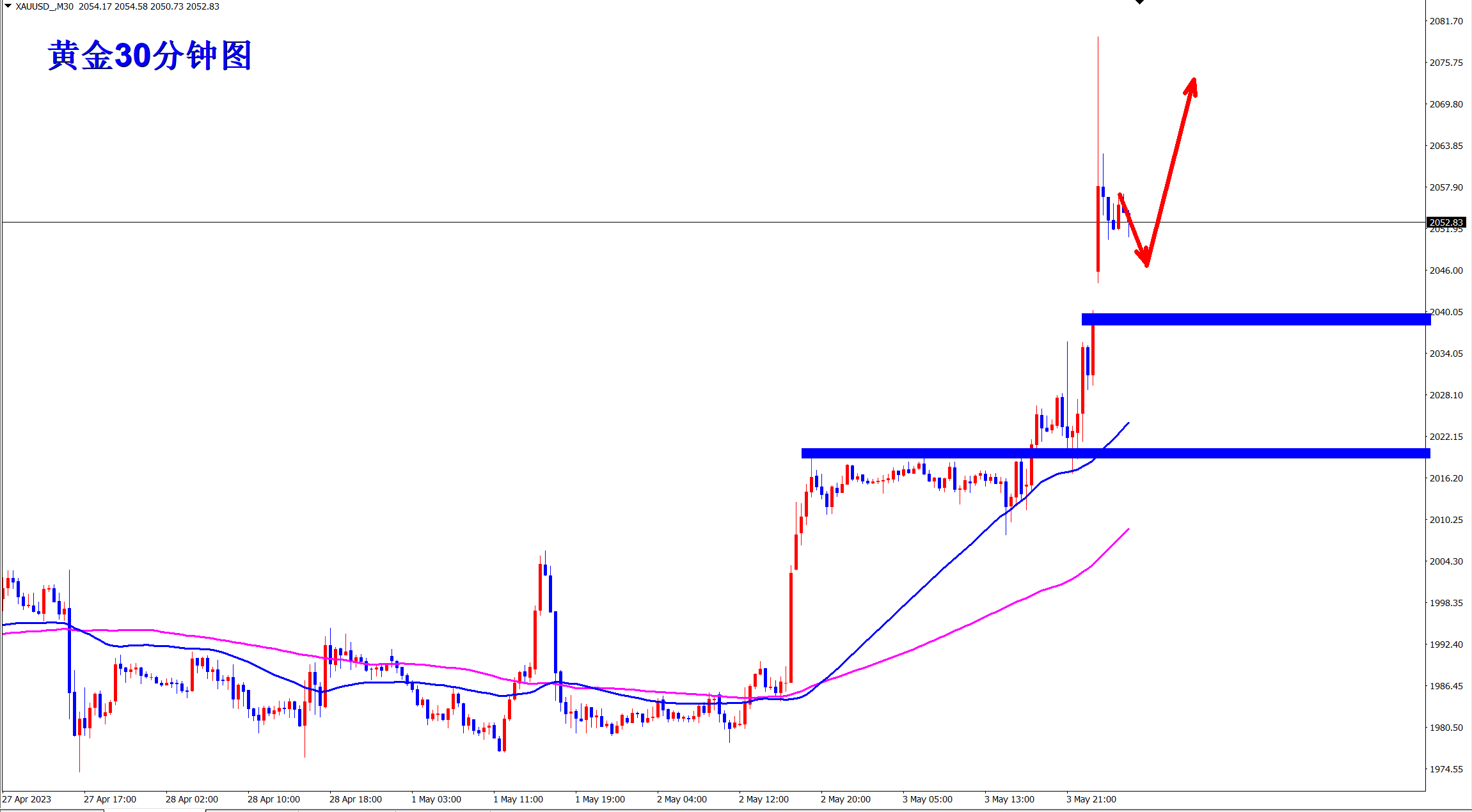 黄金昨日回踩后继续收回涨幅,虽然没有继续新高,但也看出多头非常强势!今天大非农数据公布,早盘黄金依托2035的支撑做多看涨! 黄金已经突破此前的盘整压力,并且站稳!趋势延续,操作上顺势而为!继续将干多进行到底!上方的阻力还是关注月线2070位置是否能真正突破,只有真正突破月线压力后,行情才会真正开启