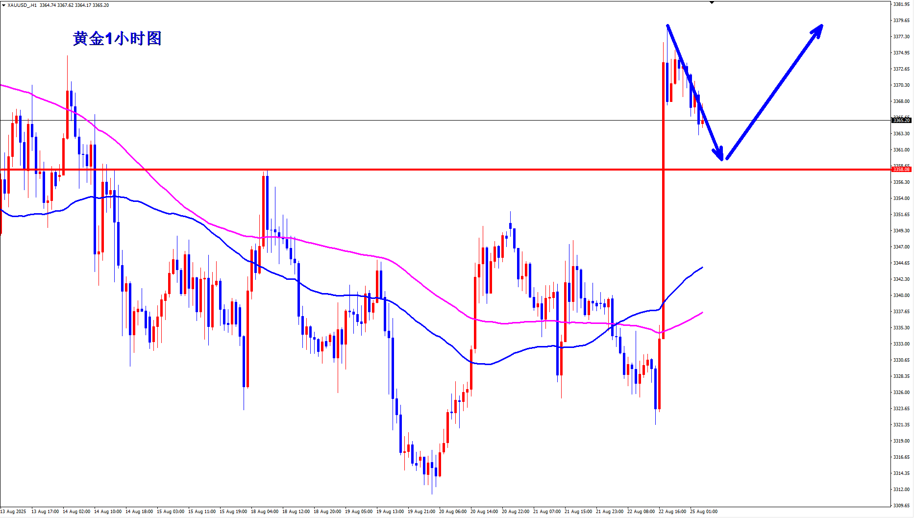 黄金周五大阳突破上涨,短线黄金多头量能还在,短线回落调整就是继续给做多的机会,黄金早盘回落继续多。 黄金1小时均线还是继续金叉向上的多头排列,黄金1小时还有上涨动能,黄金突破之后没有在高位出现快速冲高回落,那么基本上黄金多头已经在高位企稳,黄金短线支撑3358一线,如果黄金早盘回落3358附近支撑