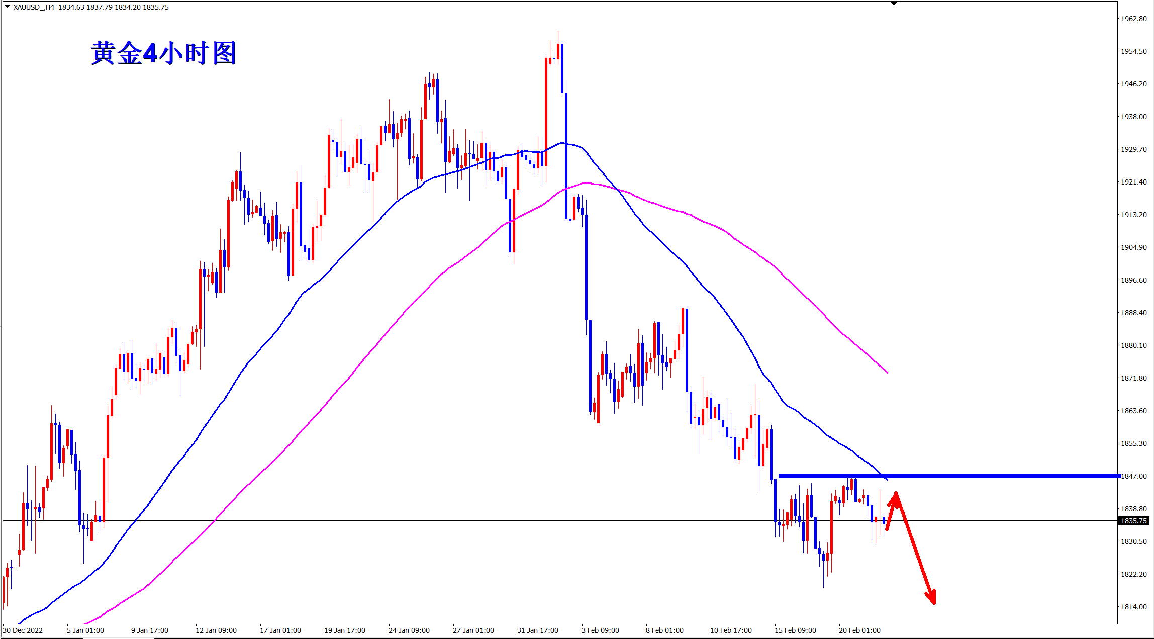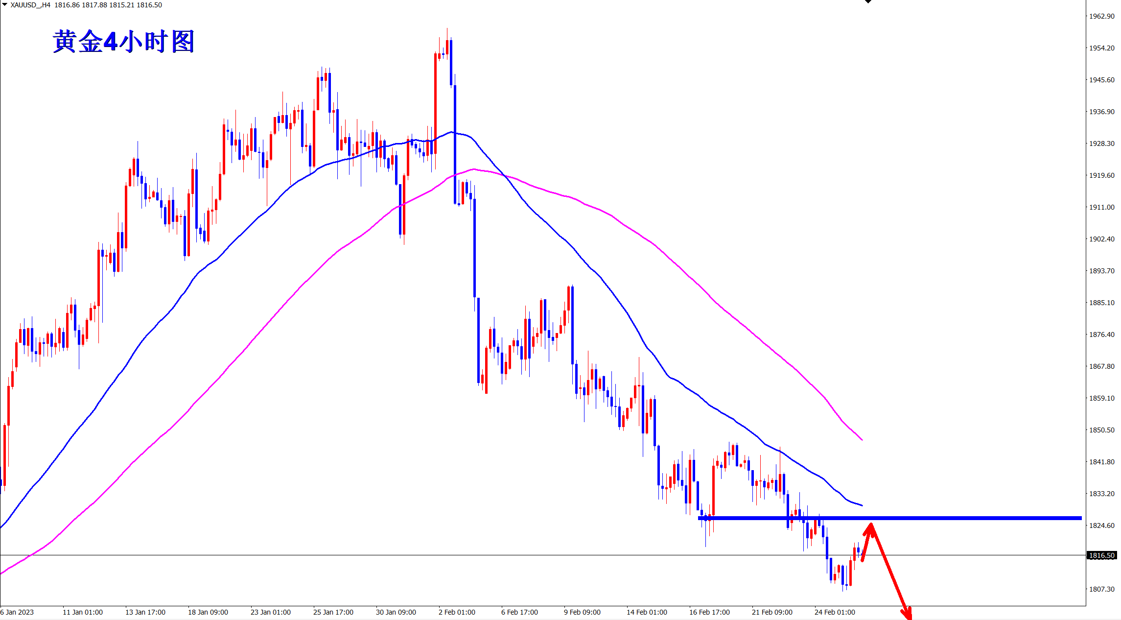黄金昨日虽然反弹,但没有力度,依旧似乎下跌趋势,反弹仍是做空机会!早盘依托1825的压力继续干空! 趋势下跌,顺势而为!当前的黄金阴跌不止,虽然有反弹,但是反弹的力度非常弱,昨日的反弹依旧没有关键均线的压制!空,反弹仍是继续干空,不破不立,破位反转!在此之前将干空进行到底! 黄金4小时级别均线