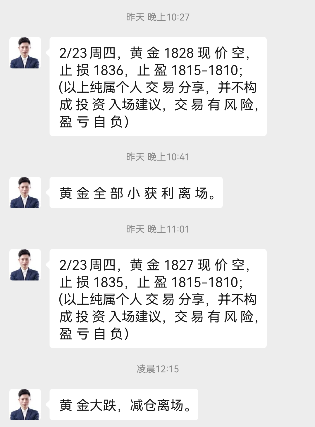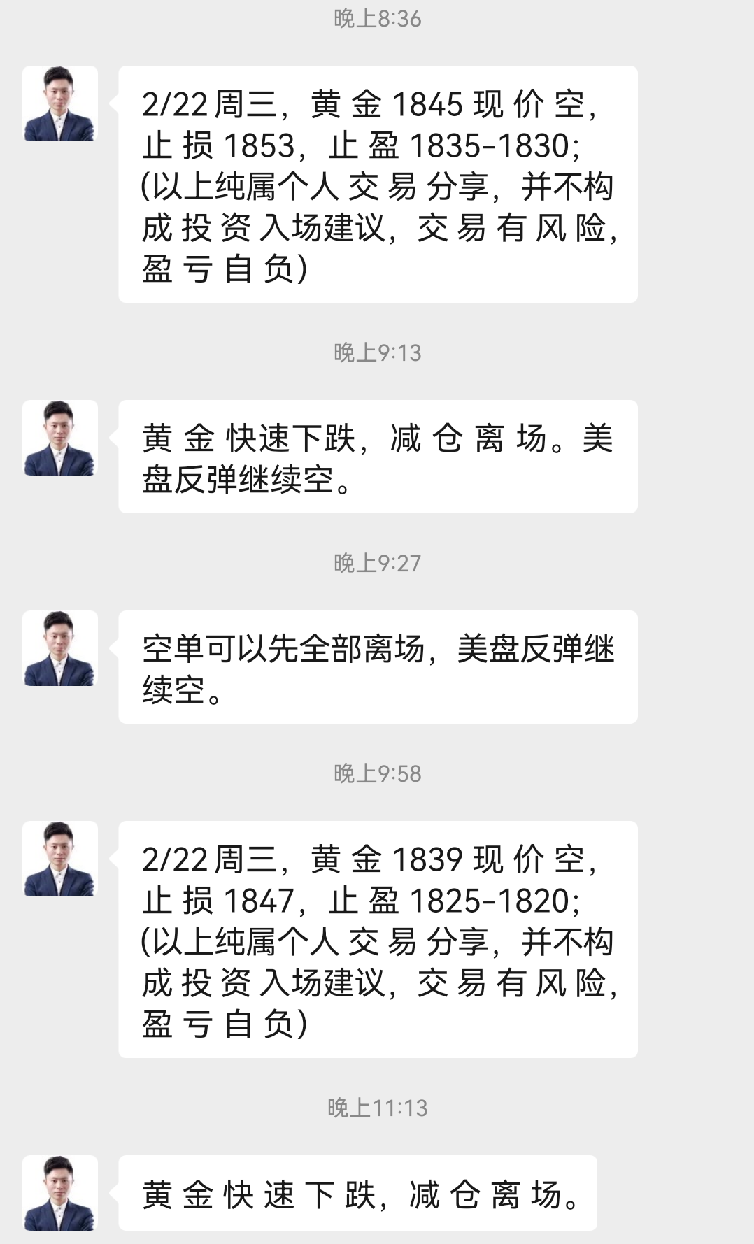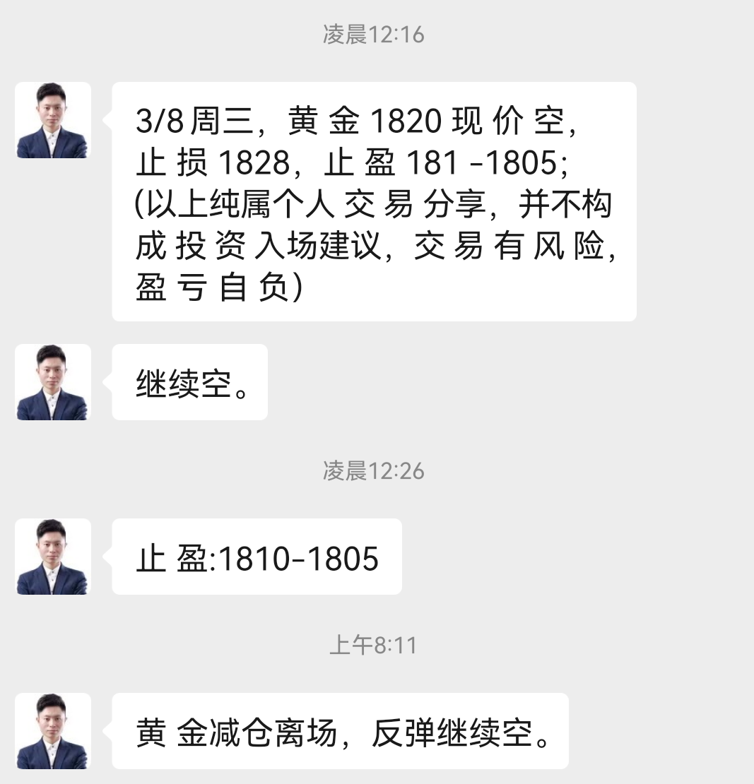 黄金昨日大跌,王杨1845空,1839空统统获利!跌势继续,今日反弹依托1835的压力继续干空! 顺势轻飘飘,逆势乱糟糟!王杨将顺势干空的原则贯彻的淋漓尽致!反弹就是空,对,就是这个节奏,趋势为王,点位致胜!空头跌势,,每个人都看到清楚,但弱势的震荡反复中,点位才是致胜的法宝妙门! 空,早盘反弹