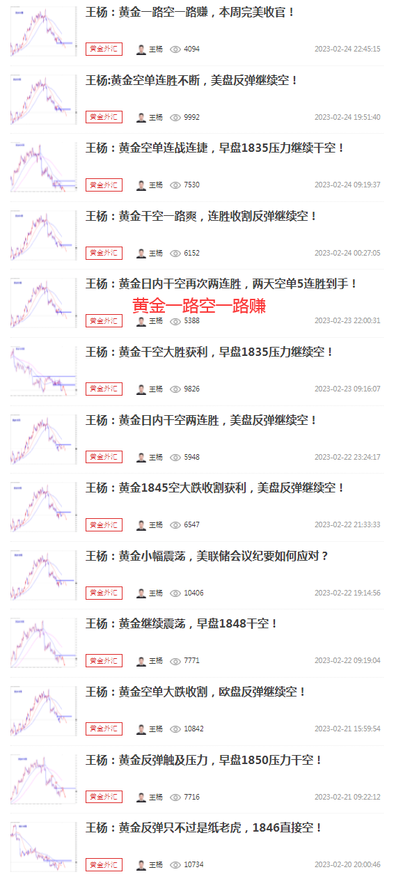 王杨:资深黄金分析师,多年黄金分析及实盘操作经验,曾独掌千万,纵横于市场;对国际基本面、技术盘面解读有独特的思维理念和操作模式,曾对市场巨鳄的思路做过深度的研究;金融市场瞬息万变、灵活变动、运筹帷幄、防微杜渐、如履薄冰以一颗谦卑的心去纵横市场方可百战不殆。