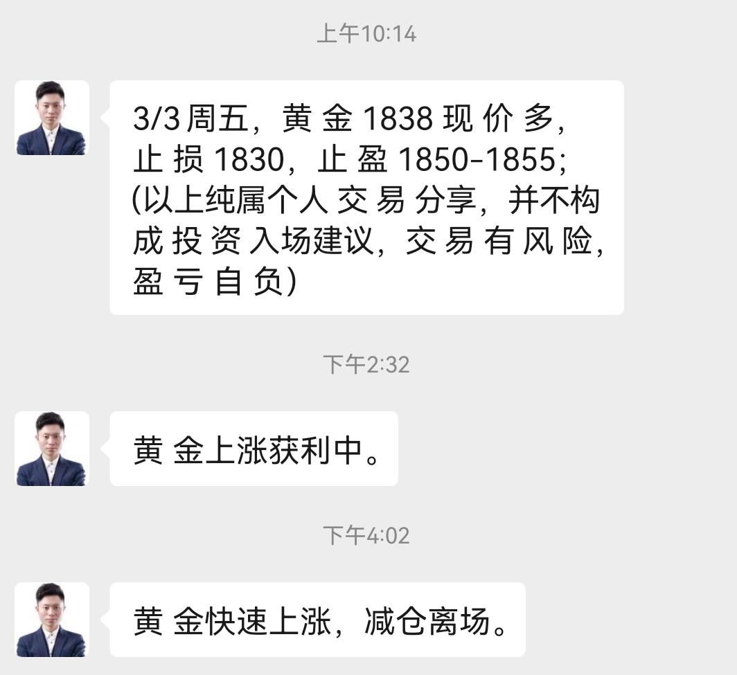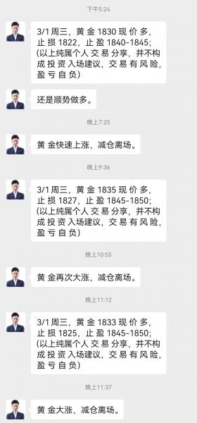 黄金上周先空后多,收获满满!当前黄金涨势继续,回落干多!早盘1840支撑多,看涨! 趋势为王,点位致胜!当前的黄金涨势延续,操作上就变得简单,每次回调都是我们再次干多的机会!顺势轻飘飘,逆势乱糟糟!每一波趋势,王杨都是从头吃到尾,没有比王杨更坚定的趋势交易者!跟上的都懂! 当前黄金的支撑是周