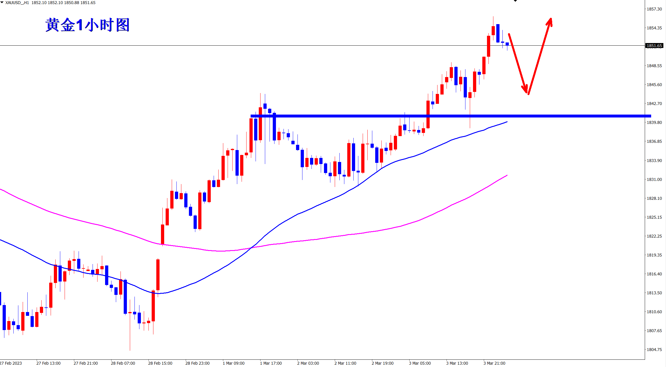 黄金昨日冲高回落,但是依旧没有改变上涨趋势!回落仍是干多机会,早盘回落依托1840的支撑多! 顺势轻飘飘,逆势乱糟糟!当前的黄金震荡上扬,并且突破此前1850的压制!现在的回调是突破后的正常回踩!蓄势后还有新高!市场如战场,讲究战术策略,步步为营,不可轻敌!也不能妄自菲薄,要在战术上重视行情,战略上