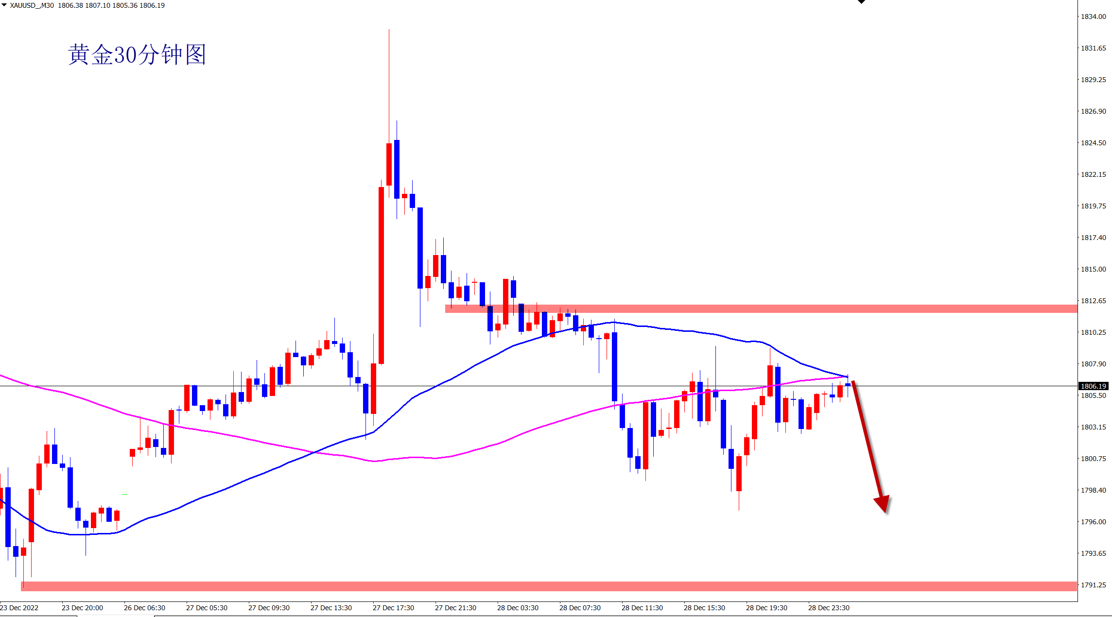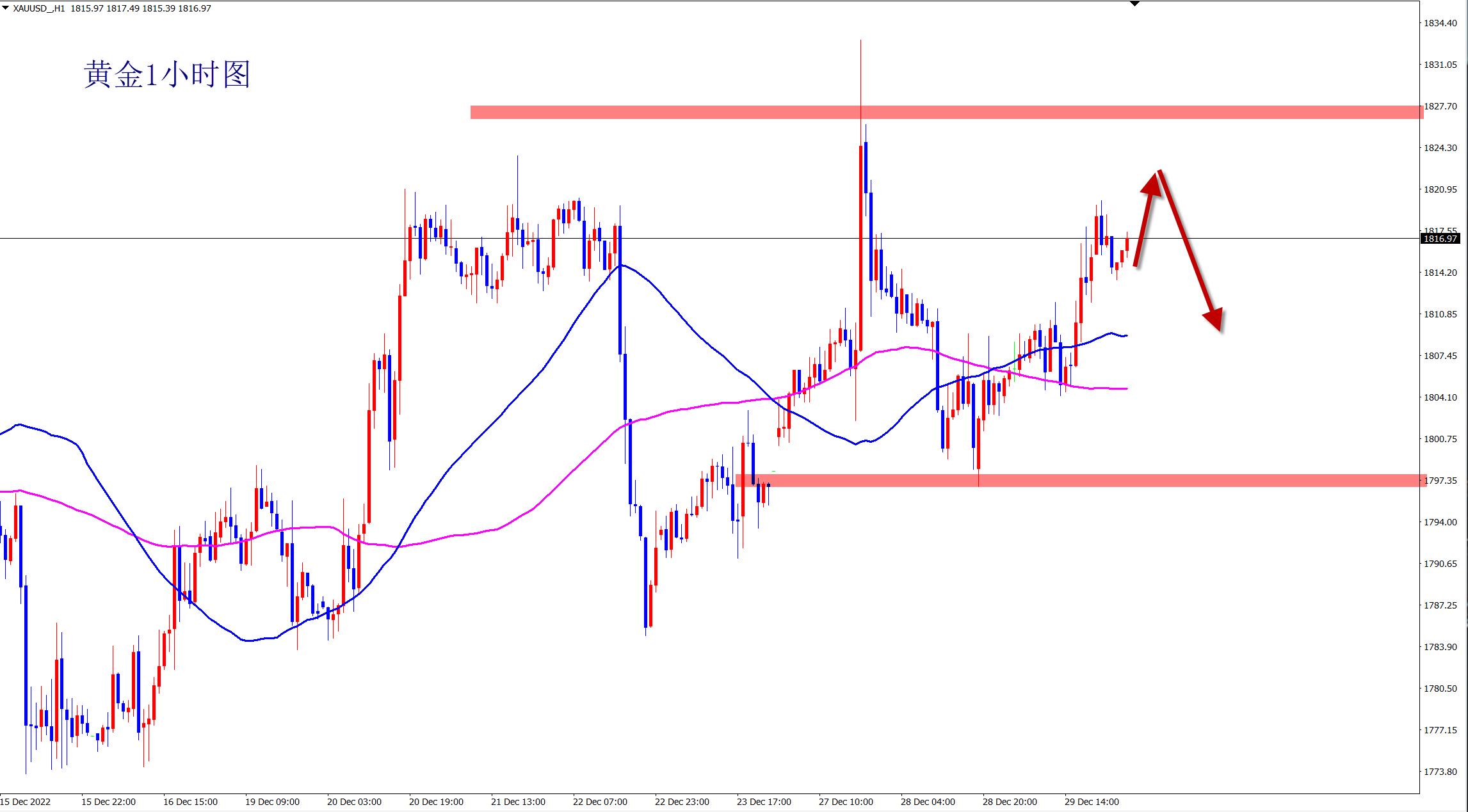 黄金昨日波幅不大,最终空单小获利出局!当前黄金反弹遇阻压力,早盘1815压力位置下反弹继续干空! 黄金前日冲高回落,昨日阴线覆盖,行情见顶!从走势上来说,黄金已经出现顶部形态,昨日维持1798-1810窄幅区间内震荡,反弹未能突破最近的压力,空头形态!压力位置依旧是做空! 计划你的交易,交易你的计划!