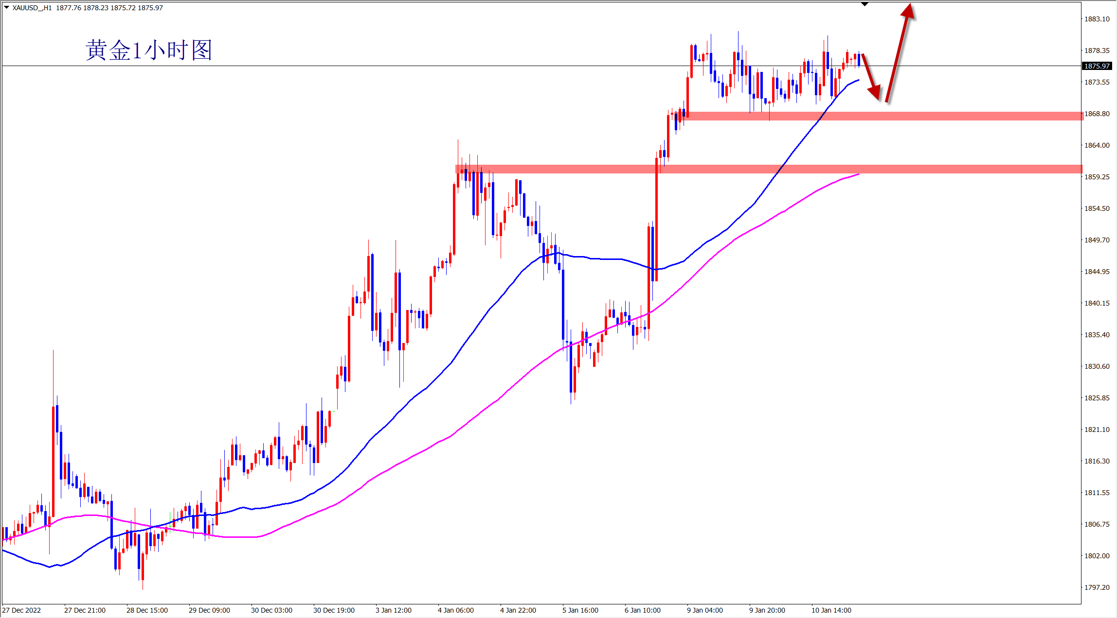 黄金强势上涨走势,回落都是干多机会!早盘依托1860的支撑继续低多看涨!顺势轻飘飘,逆势乱糟糟,顺势而为,轻松获利! 黄金当前明显的上涨趋势,大方向还是多!短线遇阻1880的压力开始回调!但涨势不变!回调恰是再次干多的机会!早盘依托前高的支撑,回落干多,继续看新高! 趋势上涨,顺势而为!早盘继续