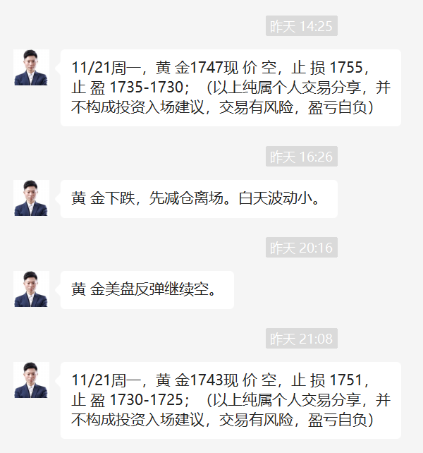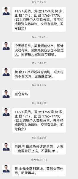 黄金昨日窄幅波动,但是王杨1753的多单还是如期上涨获利收割,小波动也必须给朋友们吃到肉! 当前黄金属于震荡中的波段上涨走势,回落都是干多机会!依托下方1748的支撑,回落继续多!上方的压力是前期反弹的1766一线!今天美国继续休市,预计波动幅度还是和昨天一样,操作上耐心等待回落机会! 方向