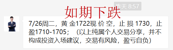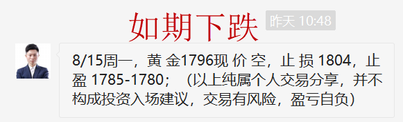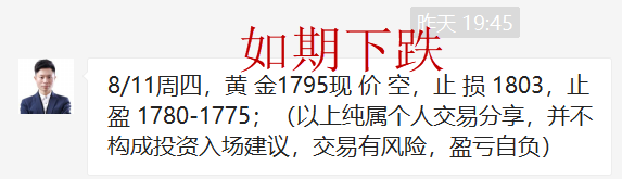 黄金昨日早盘开始一路阴跌,王杨早盘1796先空,最后行情直接破位支撑,行情转跌!今日依托1785的压力干空! 黄金如果不破位,那么还是震荡行情,但是昨日直接破位,没有给到犹豫的机会,所以昨日空单非常给力,非常完美!并且我们也及时的调整思路,开始看跌!昨日反弹的压力1785有效,而且反弹不能再次重回盘