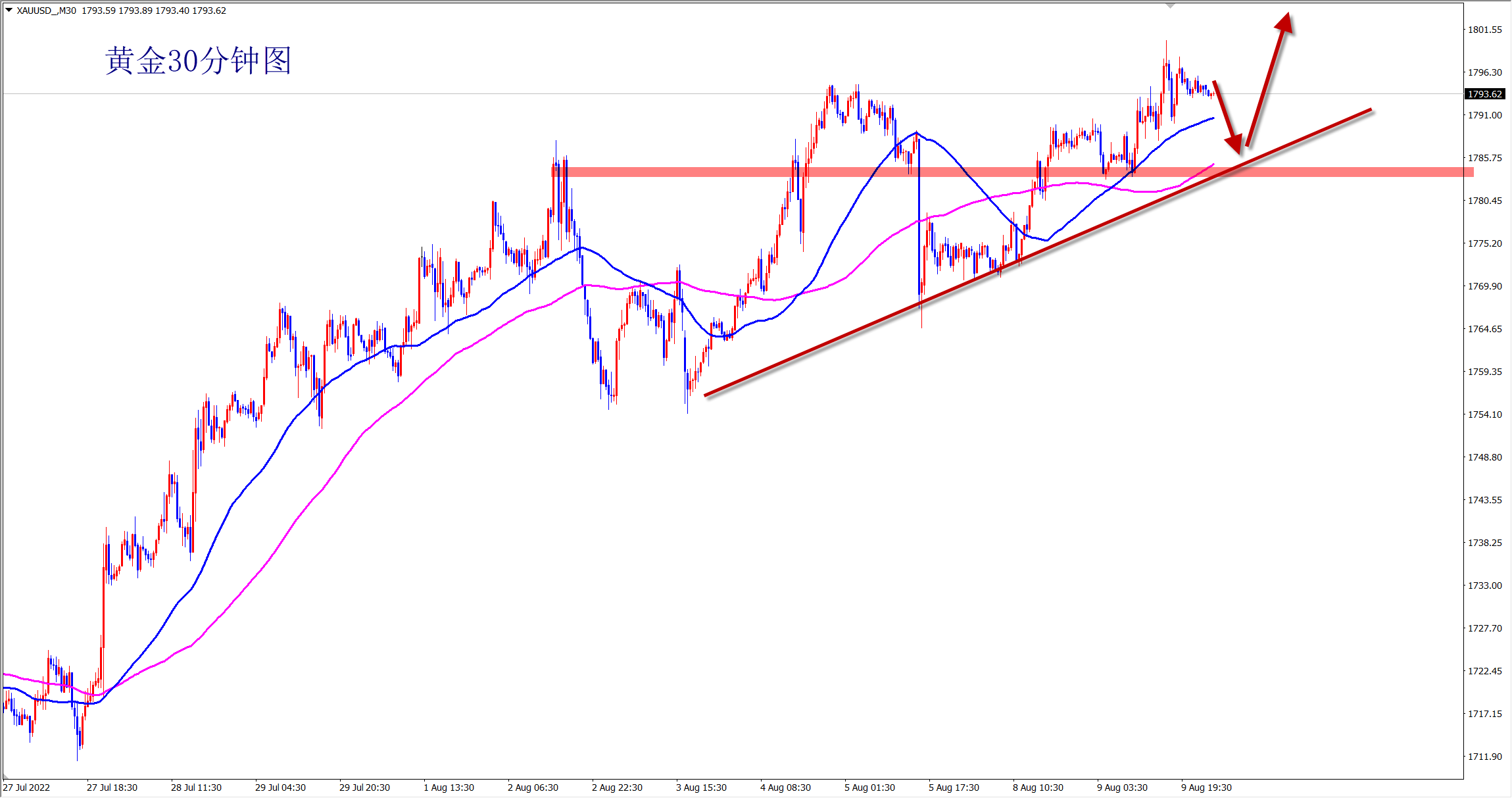 黄金当前属于震荡上涨走势,早盘回调支撑后继续干多!下方1785一线支撑明显,依托此位置干多!32 黄金当前继续上涨,但是上涨的力度开始变小,操作上一定耐心等待合适的点位出手!最近的波动幅度也非常大,点位如果把握不好,很可能也不会有太好的获利机会!守住关键压力支撑,择时交易! 多,早盘回落支撑后