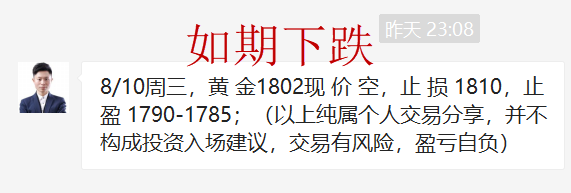 黄金昨日行情先涨后跌,早盘王杨1790干多,如期大涨获利!回落1793继续干多,行情二次拉升!随后行情上涨无力,王杨第一时间调整思路,1802果断干空,如期下跌获利收割!变盘节奏精准拿捏,完美! 黄金当前上涨遇阻,并且大幅回落,早盘首要关注1786的低点,这是昨日回踩支撑位置,如果站稳,行情会在1786-1808