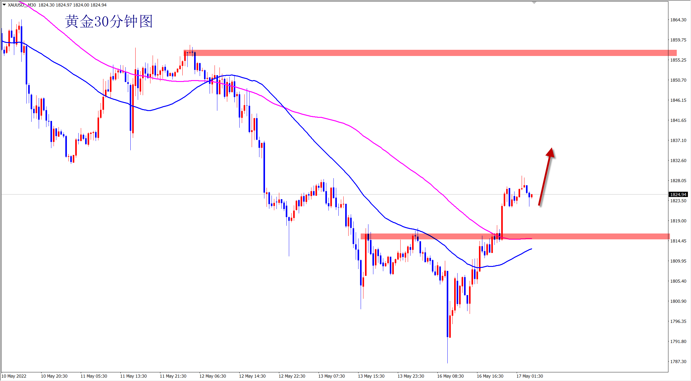 黄金周五遇阻深度回调后再次深V翻转,今日早盘直接突破新高,非常强势的上涨走势,回落继续干多,早盘依托1843的支撑继续干多! 顺势轻飘飘,逆势乱糟糟,顺势而为,点位致胜!当前毫无疑问的是上涨趋势,回落干多是最佳的选择!而且如此强势的上涨,回落的机会不要错过,一定要果断坚决!趋势面前,套得住时间