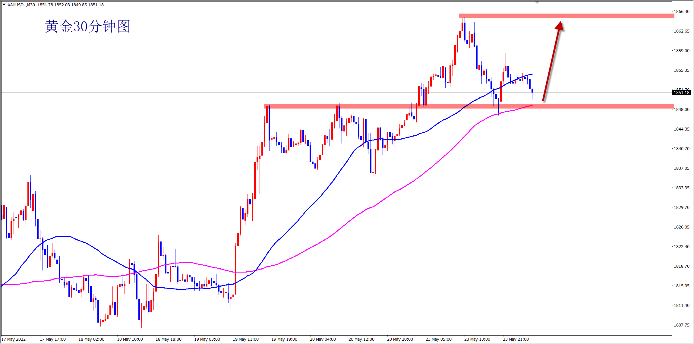 黄金当前涨势不变,支撑位置继续多,昨日最低回踩1846位置获得支撑,这将是再次上涨的起涨点,继续干多,早盘直接多! 计划你的交易,交易你的计划。趋势为王,点位致胜!当前的黄金属于上涨走势,而且是强势的上涨,每次回踩都是为了再次新高,本次也不例外,抓住回落机会,果断继续干多! 早盘依托1846的支