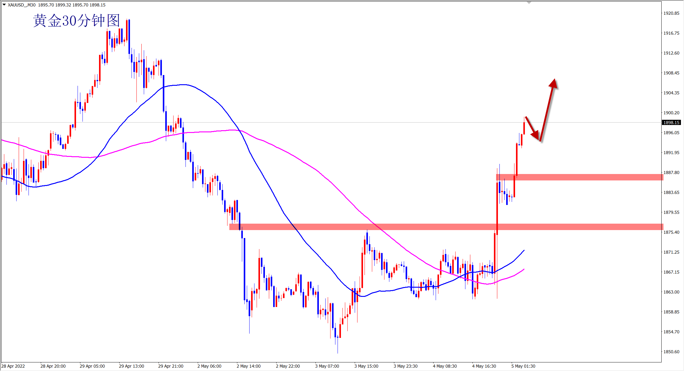 黄金凌晨利率决议加息50基点,但是黄金并没有再次延续下跌,而是震荡后选择向上,利空出尽是利好,而且走势也已经指明了方向,行情已经转多,今日依托1883的支撑干多了! 没有一成不变的行情,尤其是大事件会导致行情发生转折,而且黄金经过了长时间大幅度的下跌,是时候开启调整了!昨日利空出尽后,行情不再下跌