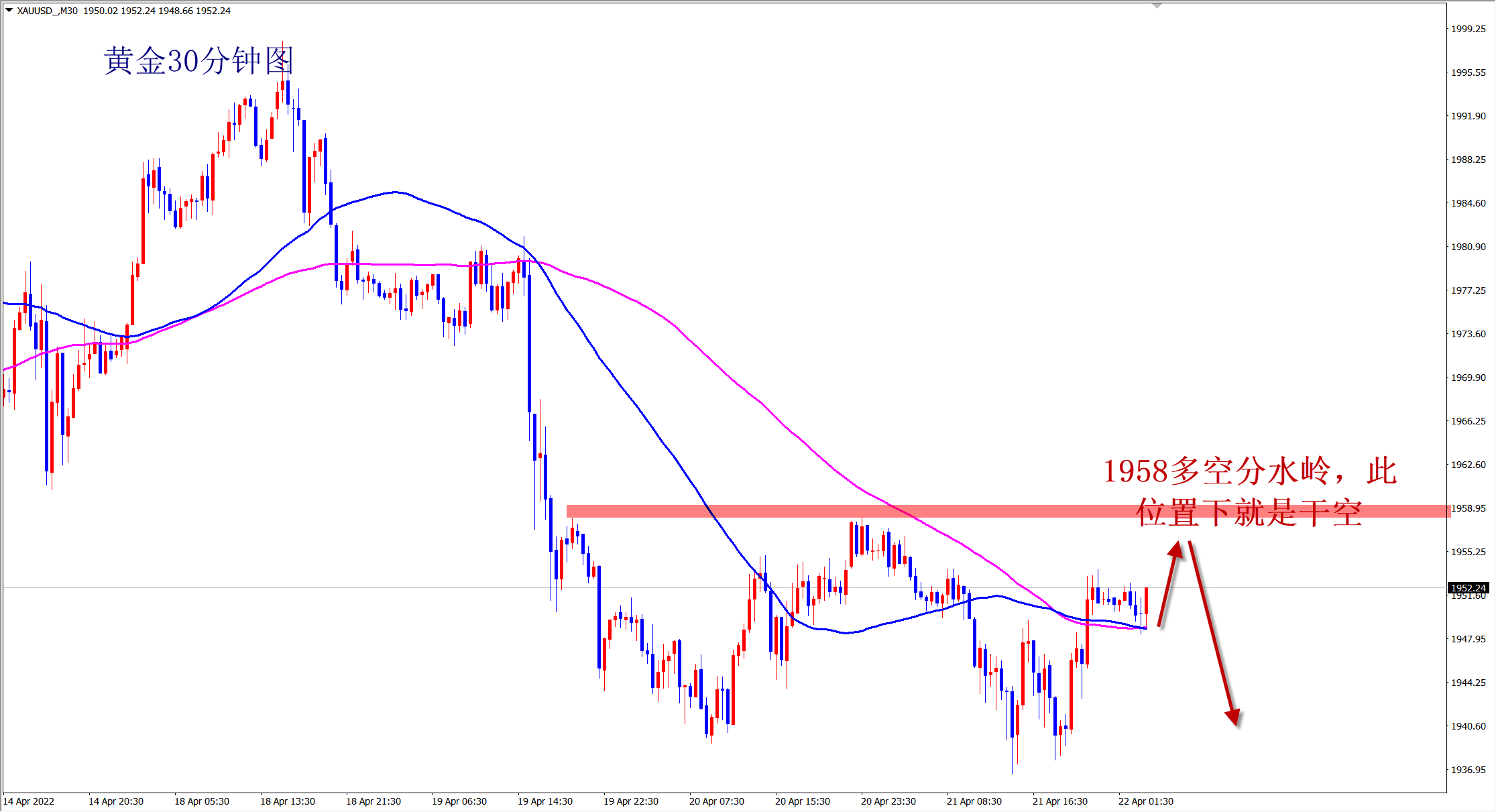 黄金当前明显的下跌趋势,虽然短线震荡,但跌势不改,反弹就是直接空,昨日1955空,1948空和1945空全部大跌拿下利润,今日还是高空不变,依托1958的压力干空! 回想最近的操作,堪称完美!我们在一片抄底声中坚定看跌,独树一帜且知行合一!没有人比我更坚定,也没有人向我一样撕心裂肺的叫你们做空,但事与愿违,