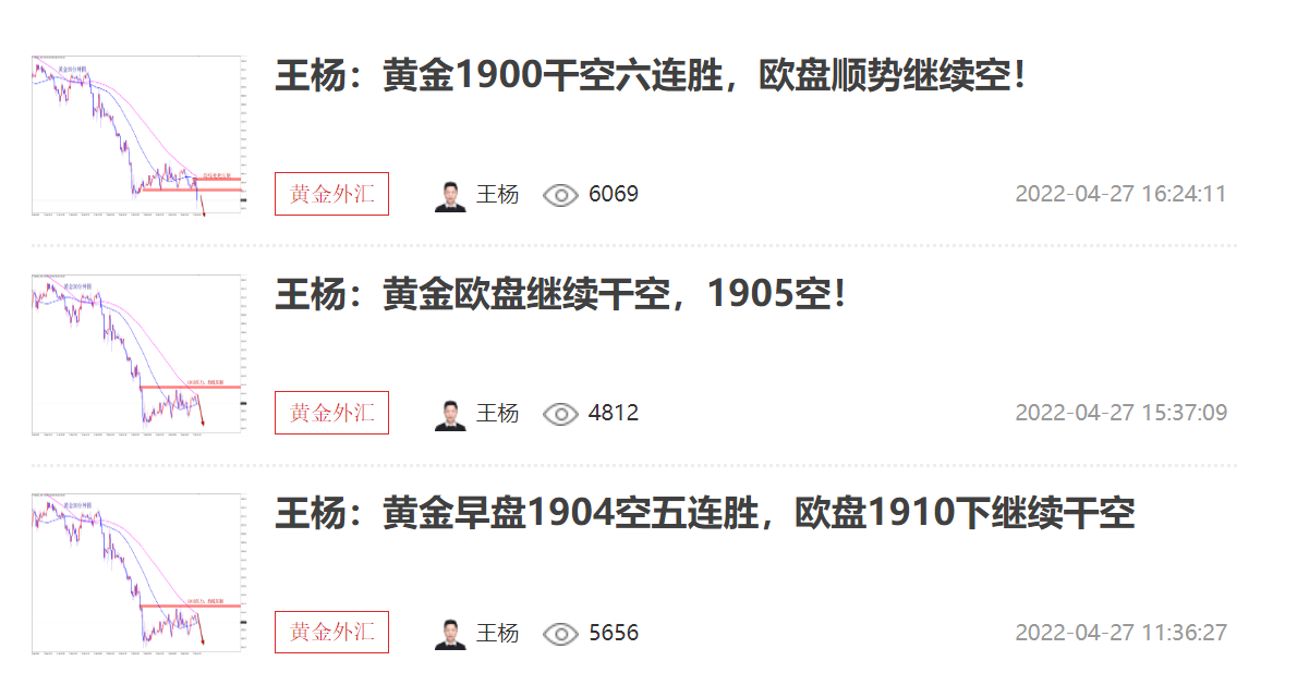 王杨:资深黄金分析师,多年黄金分析及实盘操作经验,曾独掌千万,纵横于市场;对国际基本面、技术盘面解读有独特的思维理念和操作模式,曾对市场巨鳄的思路做过深度的研究;金融市场瞬息万变、灵活变动、运筹帷幄、防微杜渐、如履薄冰以一颗谦卑的心去纵横市场方可百战不殆。