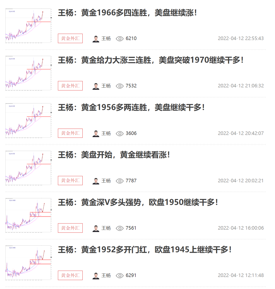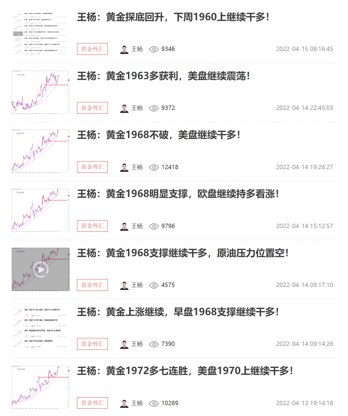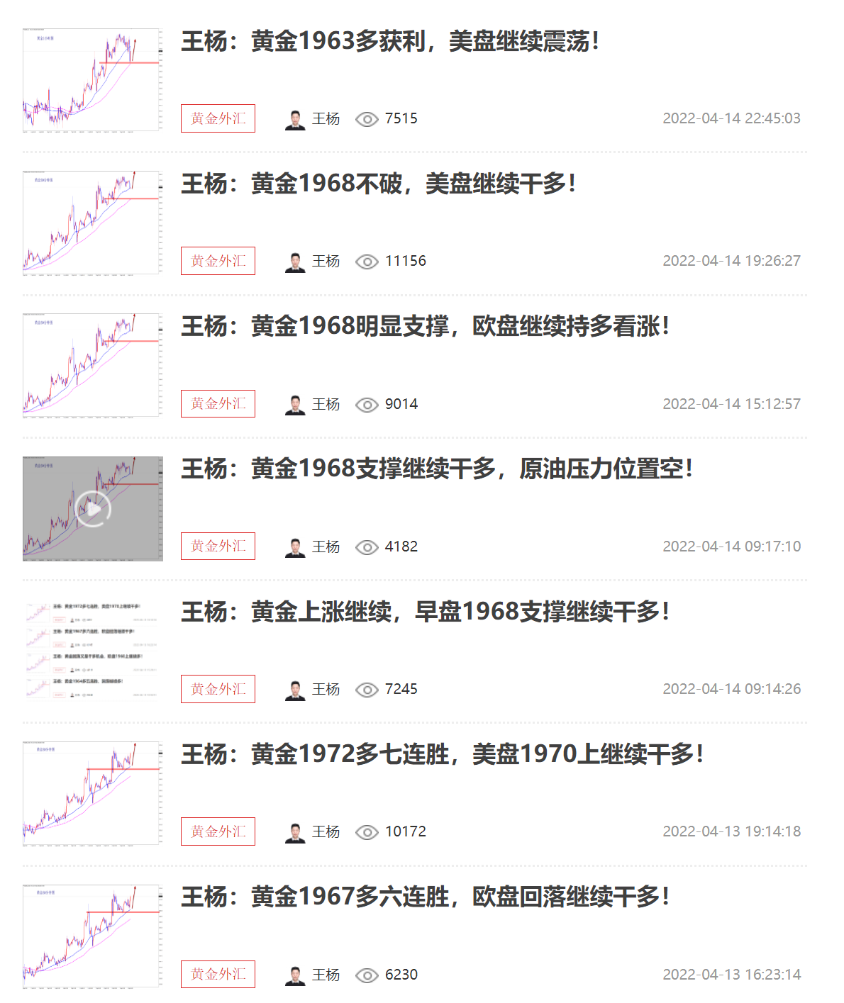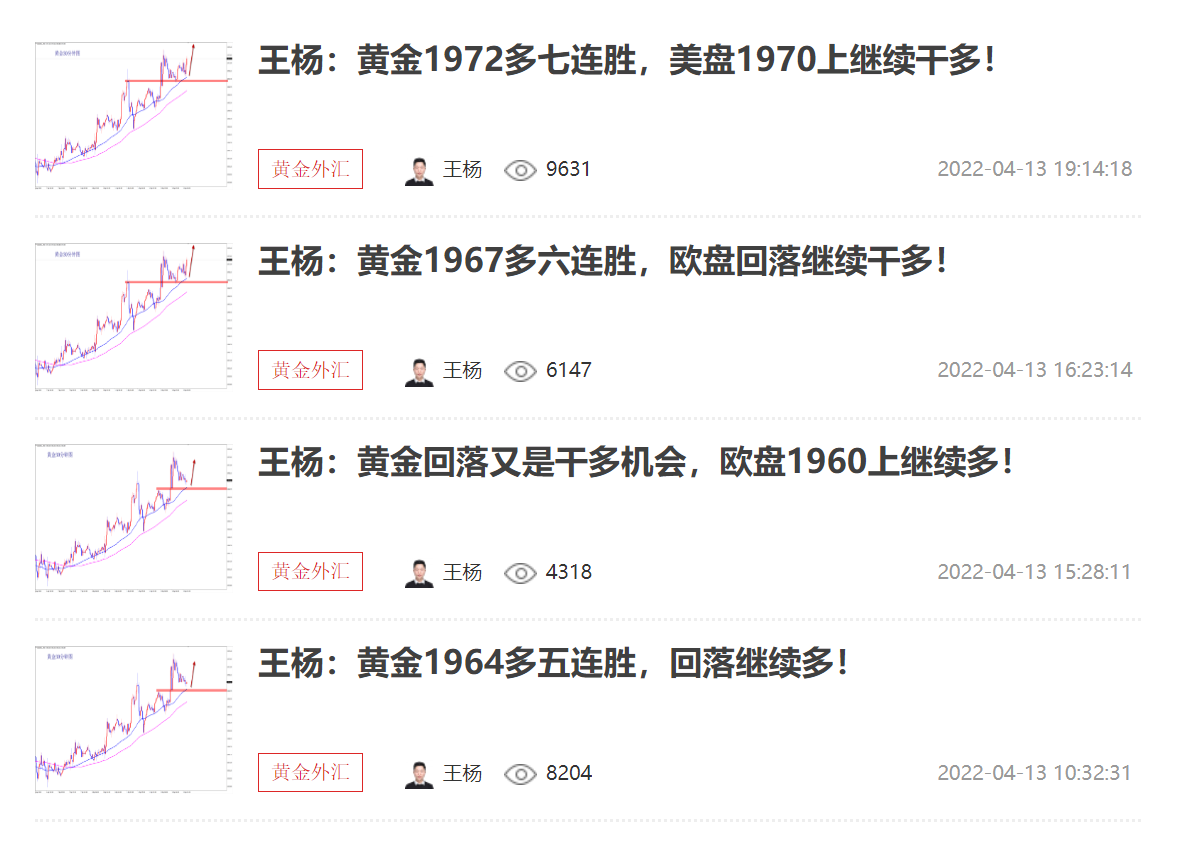 王杨:资深黄金分析师,多年黄金分析及实盘操作经验,曾独掌千万,纵横于市场;对国际基本面、技术盘面解读有独特的思维理念和操作模式,曾对市场巨鳄的思路做过深度的研究;金融市场瞬息万变、灵活变动、运筹帷幄、防微杜渐、如履薄冰以一颗谦卑的心去纵横市场方可百战不殆。
