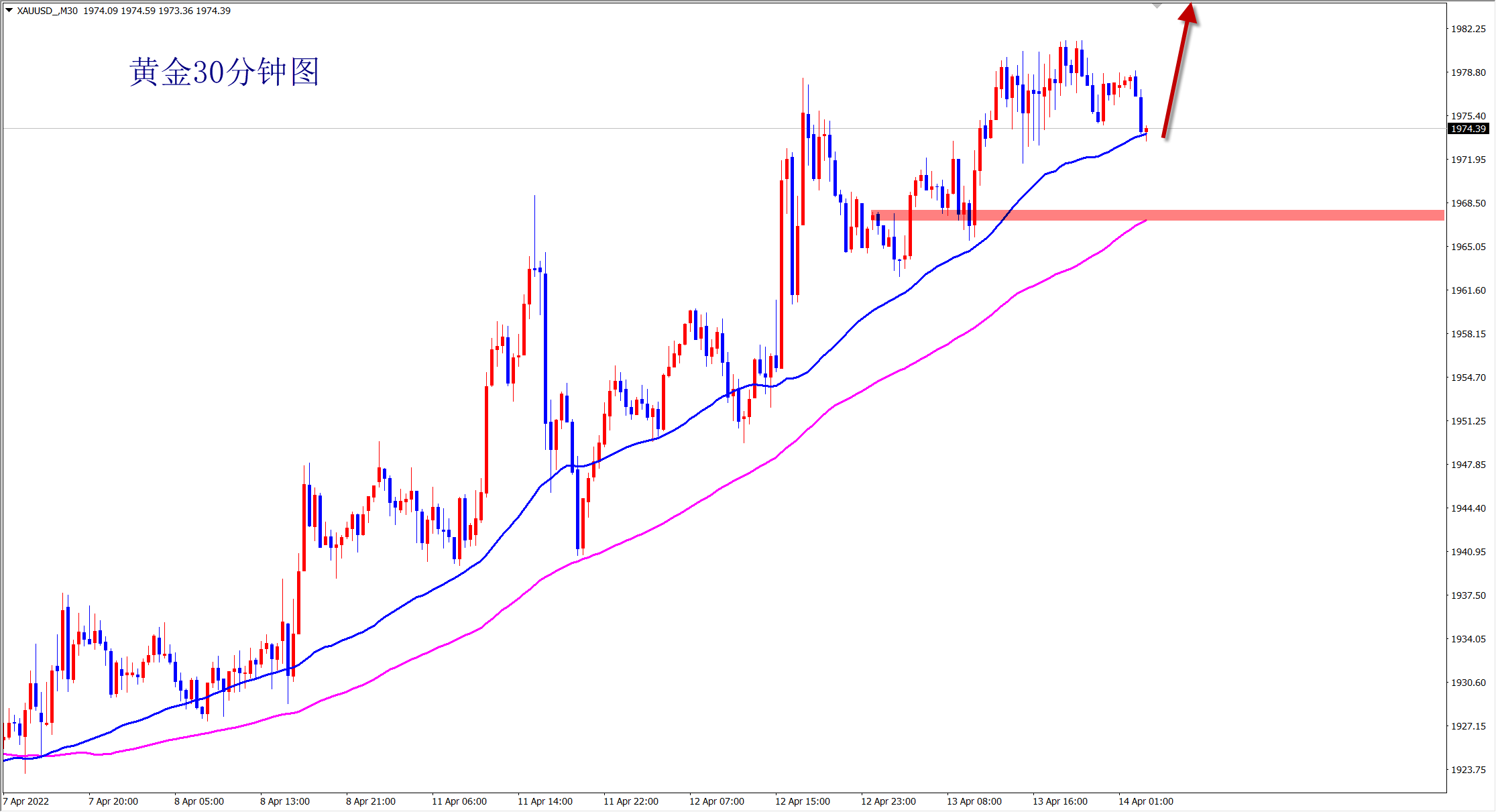 黄金继续趋势上涨,我们上周一直坚持低多看涨,最多拿下七连胜!当前黄金继续大阳竖起,突破阶段高点,上涨继续,今日依托1978的支撑继续干多! 黄金当前很明显的上涨趋势,这是毋庸置疑的,虽然上周四行情下跌调整一波,但是最终还是收线于1970上方,并且今日大阳竖起,突破新高。消息上,乌克兰局势加剧,黄